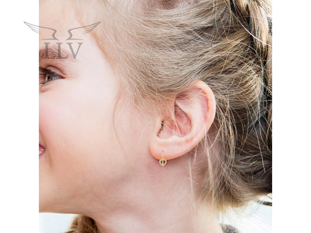 Detské zlaté náušnice Srdiečka s ružovými zirkónmi LLV66-KGER045