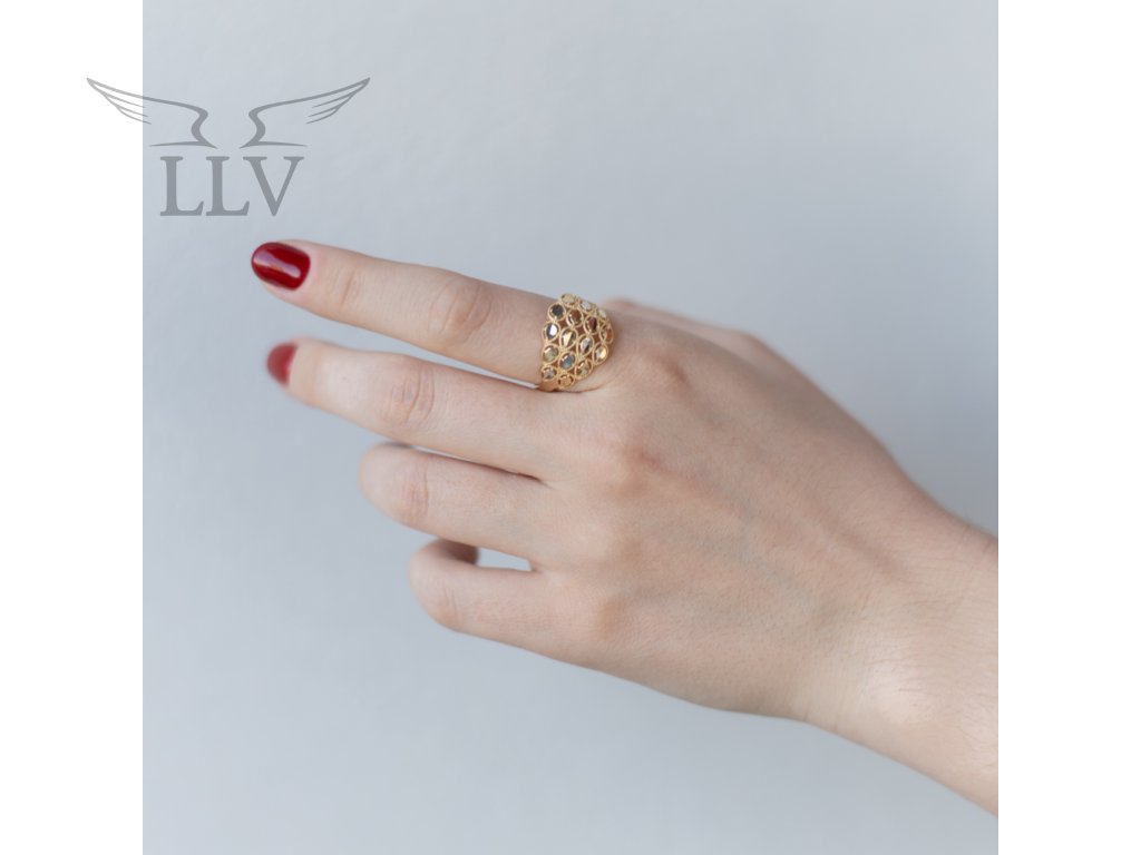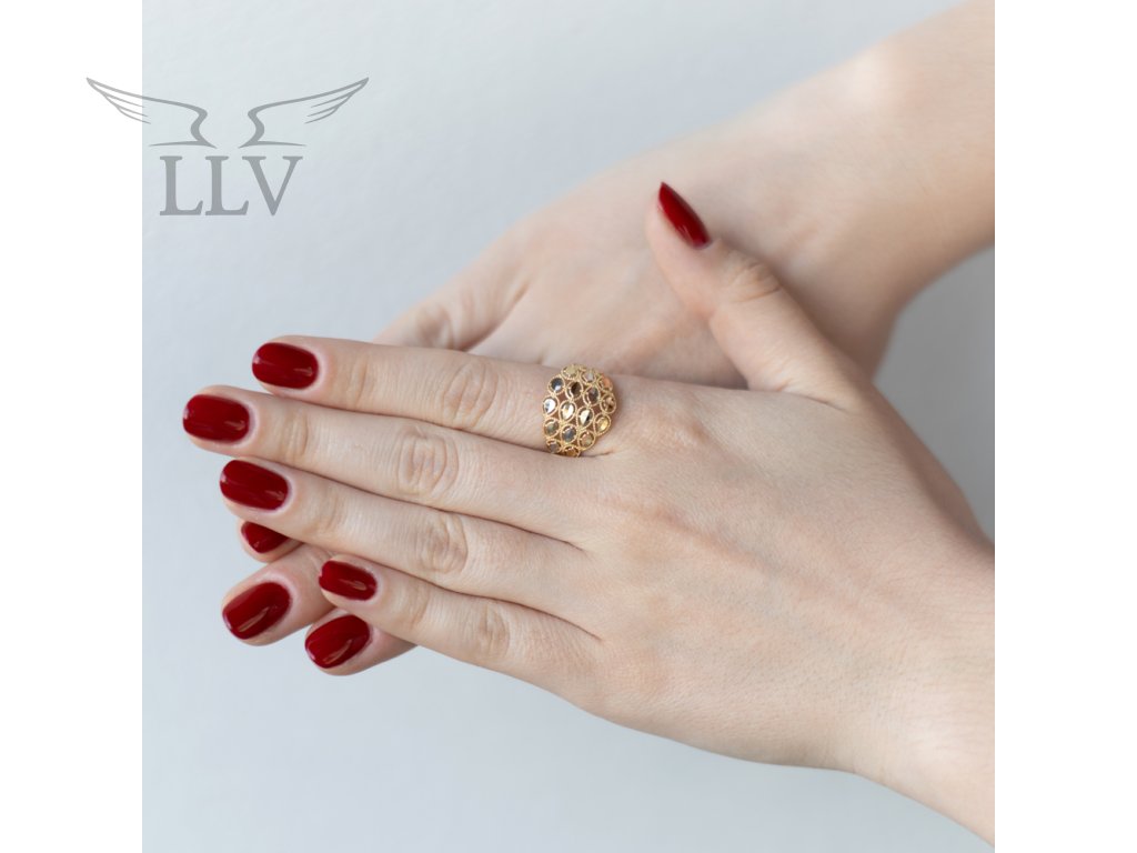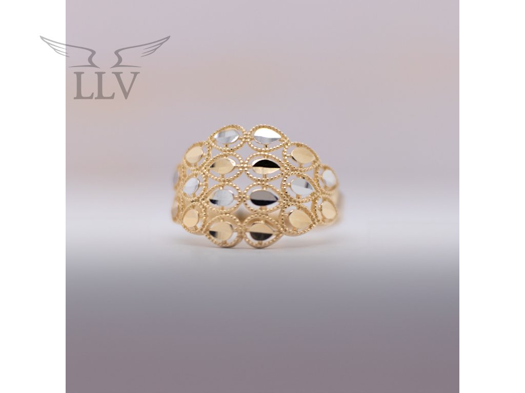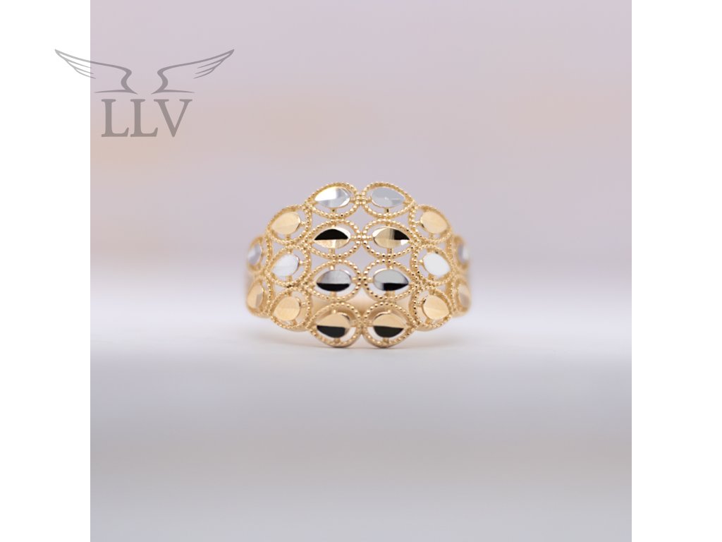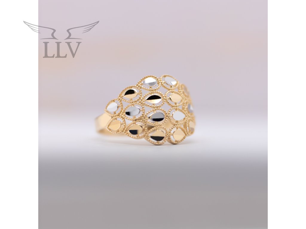 Elegantný prsteň s motívom kvapiek, kombinované zlato LLV07-GR005