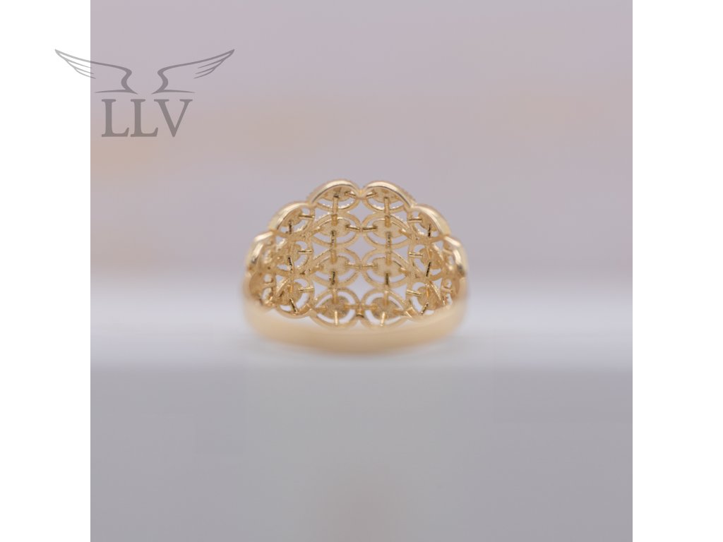 Presnosť, ktorá zaujme z každého uhla. Zlatý prsteň vyrobený z kombinovaného 14-karátového zlata s detailným gravírovaním a lesklou povrchovou úpravou. Oválne segmenty v žltej a bielej farbe sú orámované jemným zlatým okrajom, ktorý dodáva prsteňu vzdušnosť a eleganciu. Každý pohyb prsta sa hrá hrou svetla a odleskov. Vďaka svojmu veľkolepému, no zároveň jemnému dizajnu je prsteň perfektný ako dominantný šperk alebo doplnok k zlatým náušniciam či náramku.