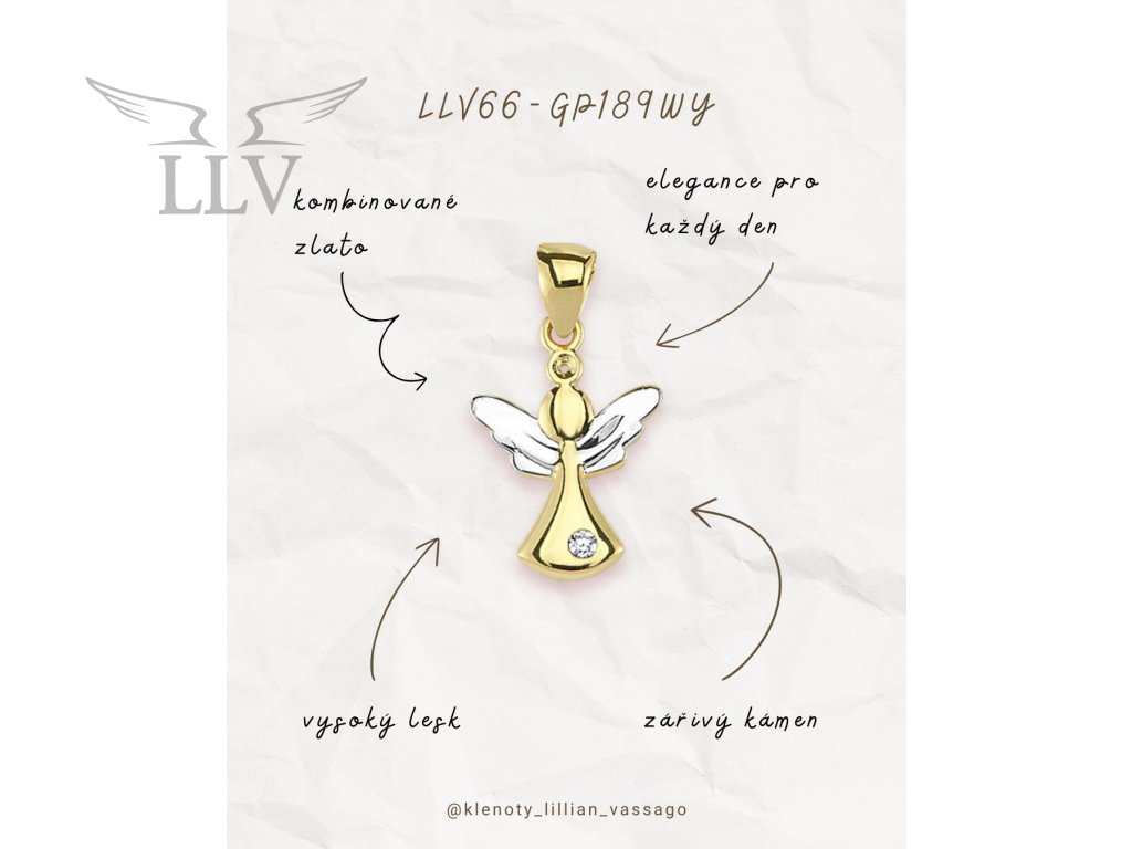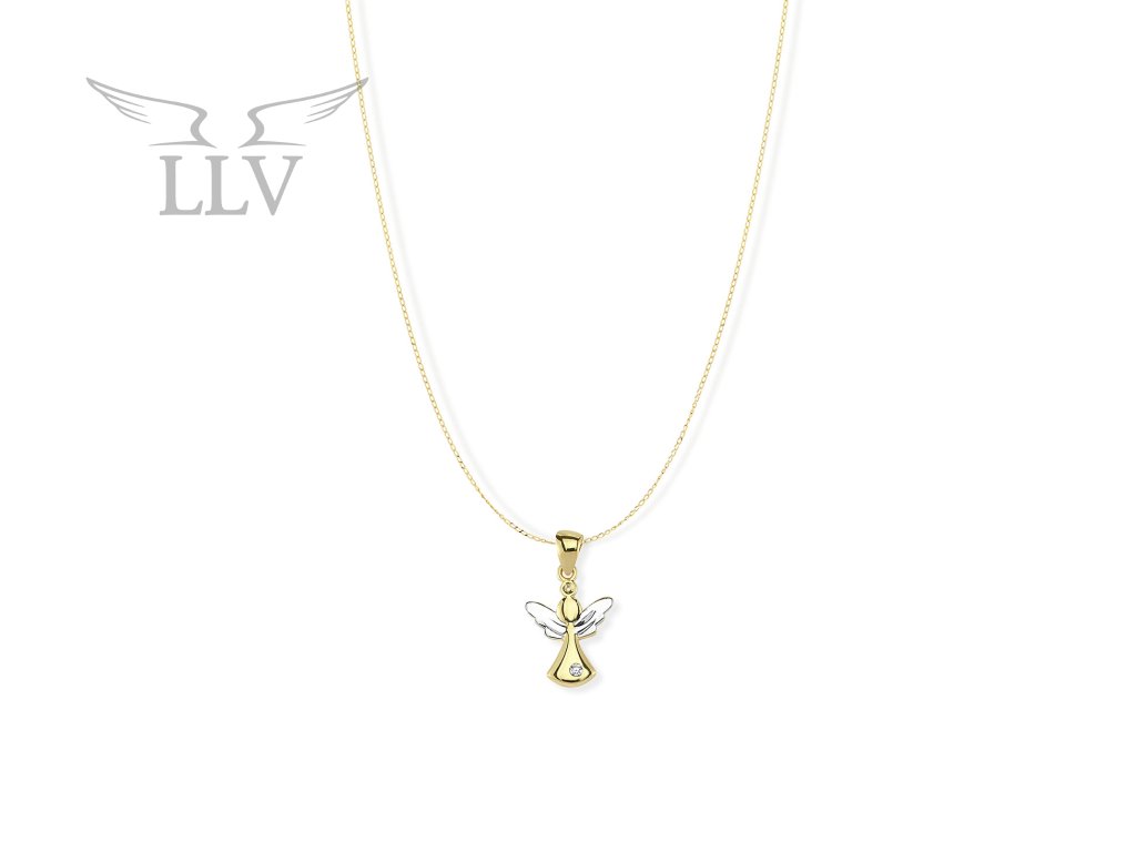 Náhrdelník s anjelom zdobeným zirkónom, kombinované zlato LLV66-GN189WY