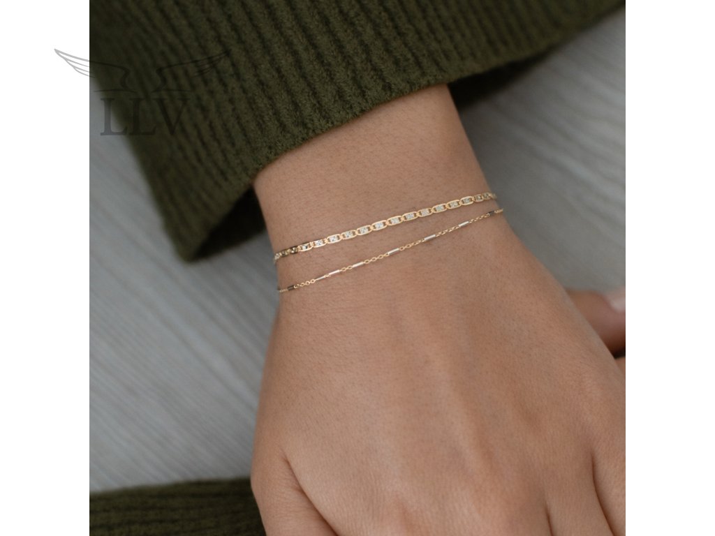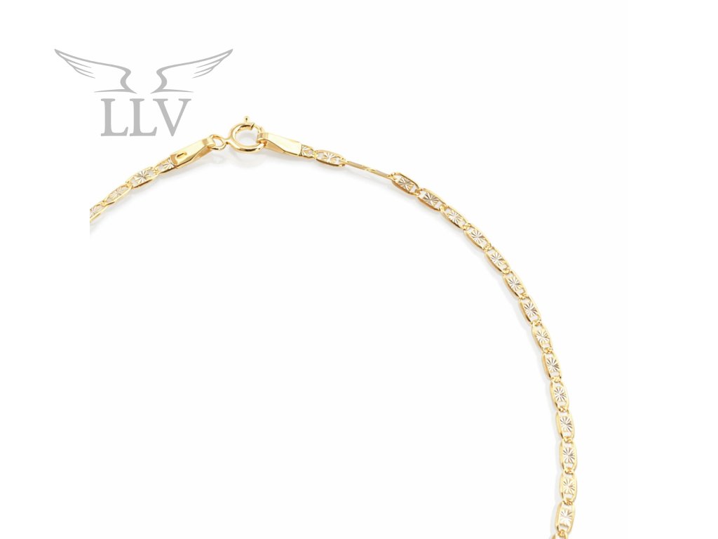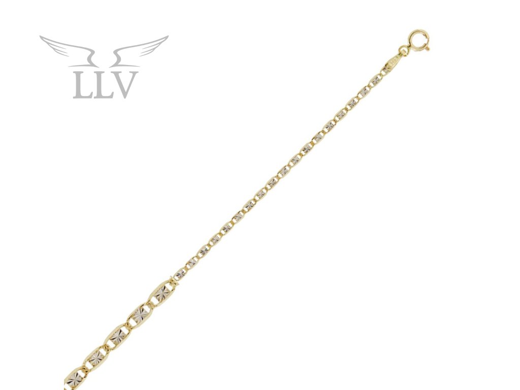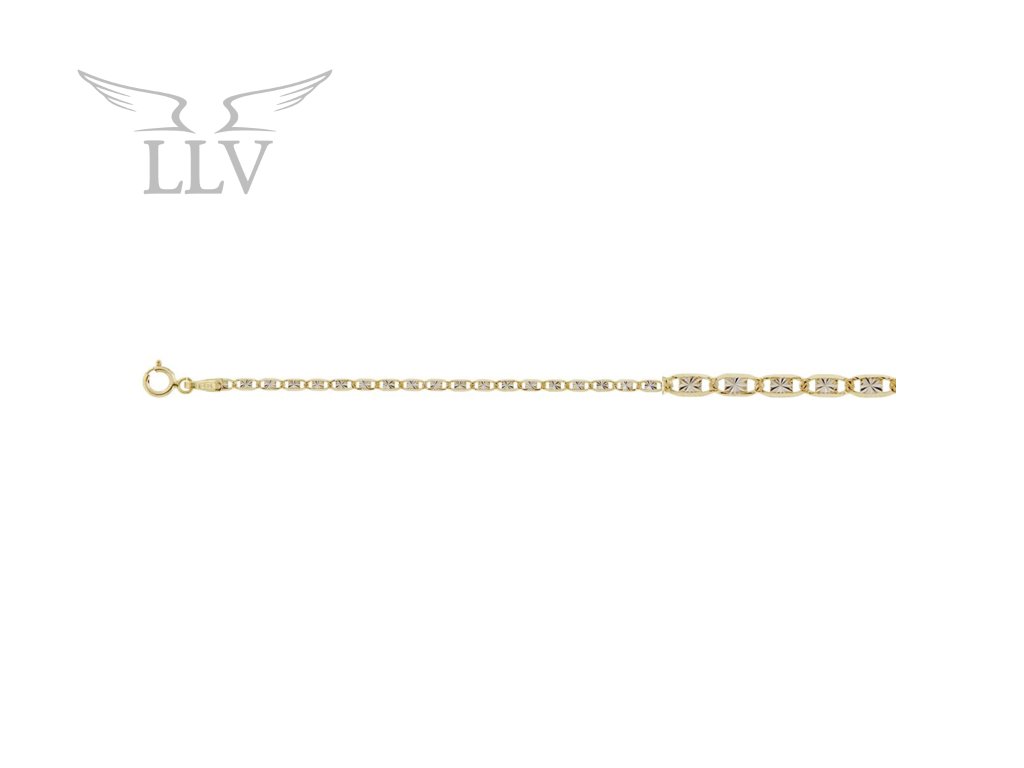 Zlatý 14kt náramok typu Valentino v kombinovanom prevedení je elegantným šperkom, ktorý spája žlté a biele zlato v harmonickom kontraste. Charakteristické články sa striedajú v dynamickom rytme a ich precízny diamantový výbrus dodáva náramku oslnivý ligot, ktorý vynikne pri každom pohybe.