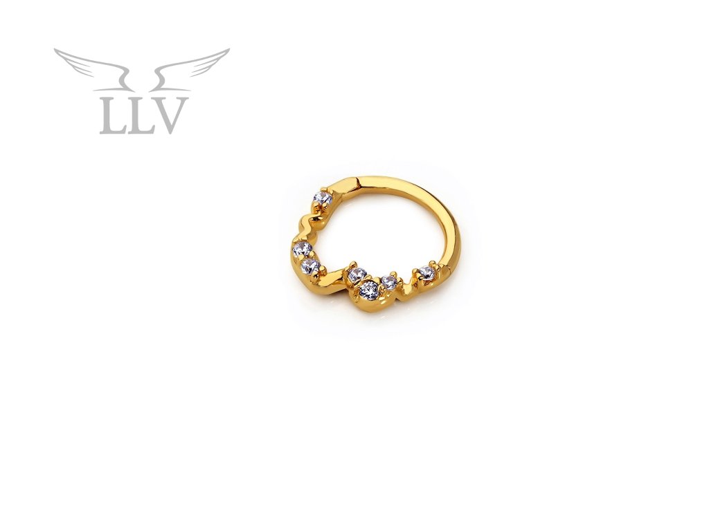 Originálny zlatý piercing krúžok so žiarivými zirkónmi LLV92-GPI022SP