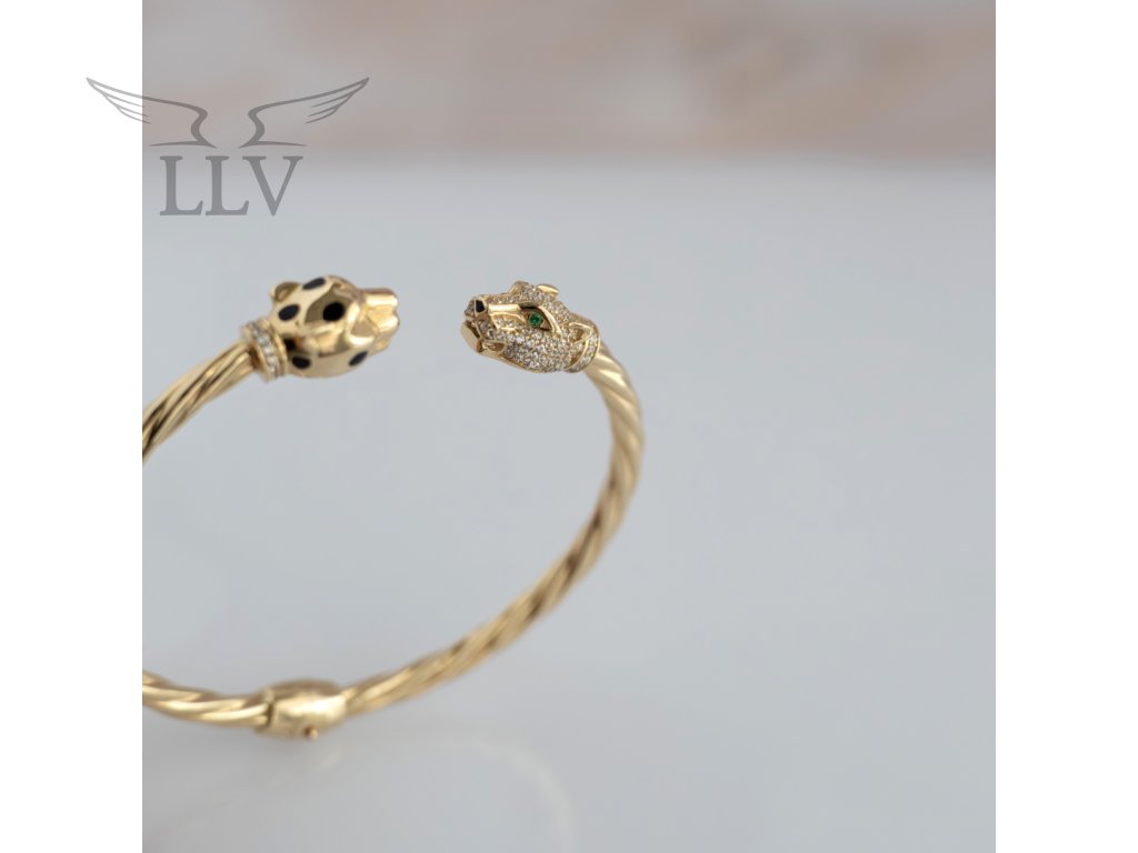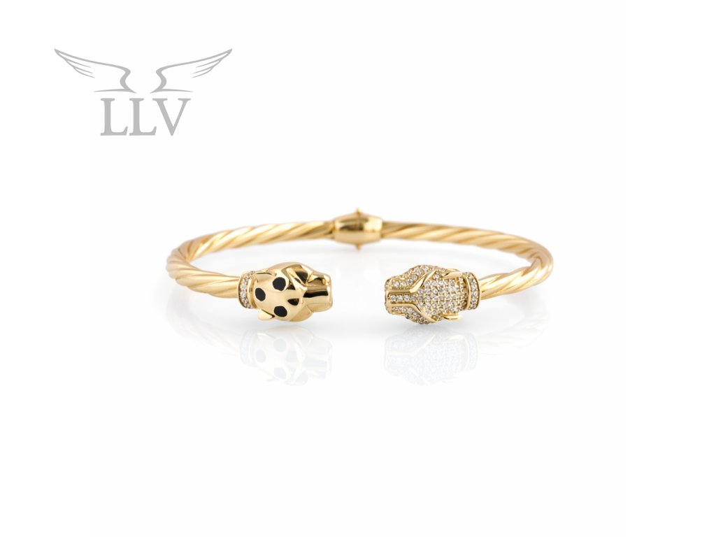 Pevný zlatý náramok leopard zdobený zirkónmi a smaltom LLV59-GB049