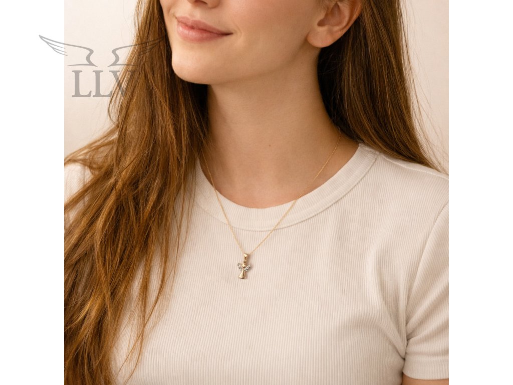 Prívesok Anjelik so zirkónom z kombinovaného zlata LLV66-GP189WY