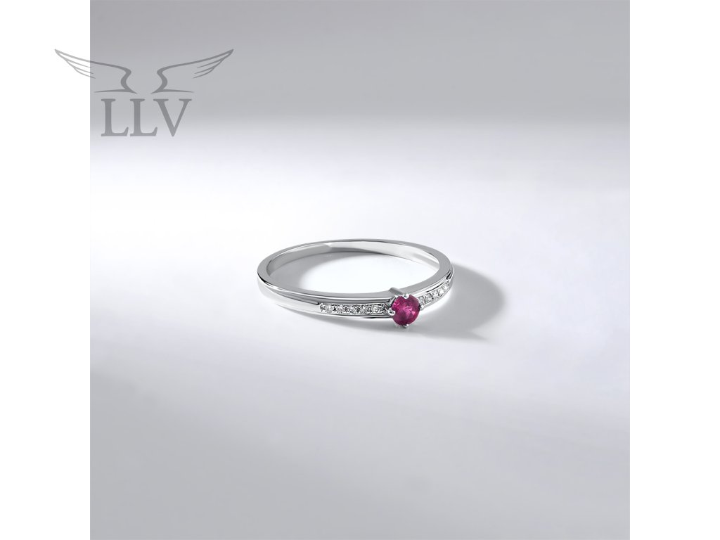 Prsteň s rubínom a diamantmi, biele zlato LLV59-DR141WRU