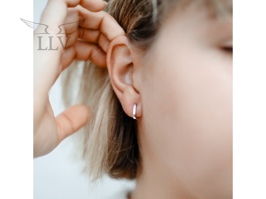 Visiace obdĺžnikové náušnice z bieleho zlata LLV31-GER064W