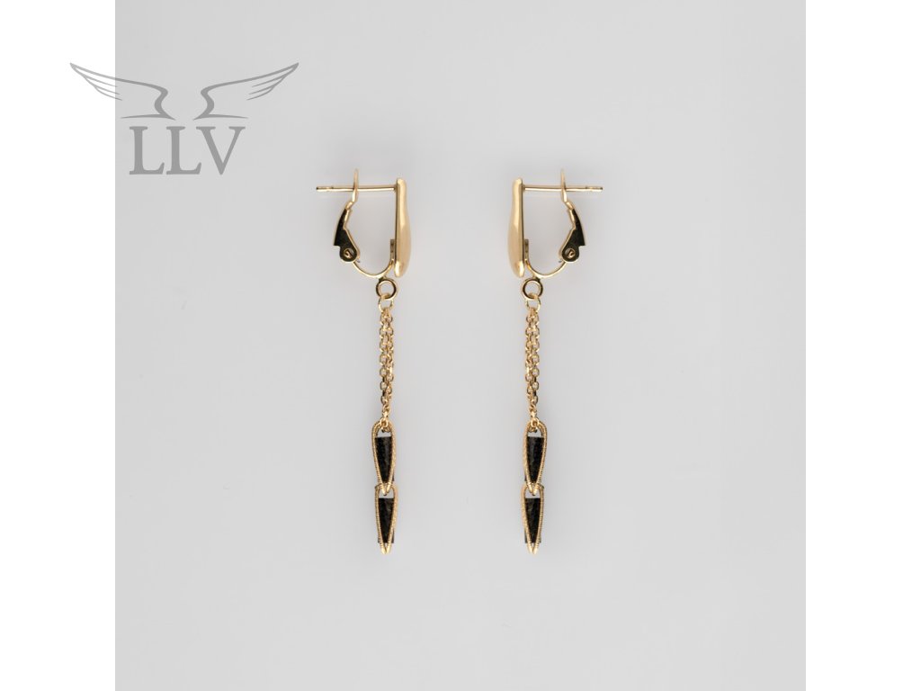 Visiace zlaté náušnice s čiernym ródiom, zapínanie omega LLV22-GER315ST