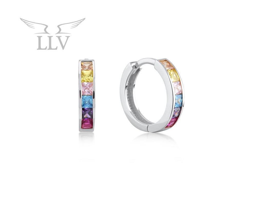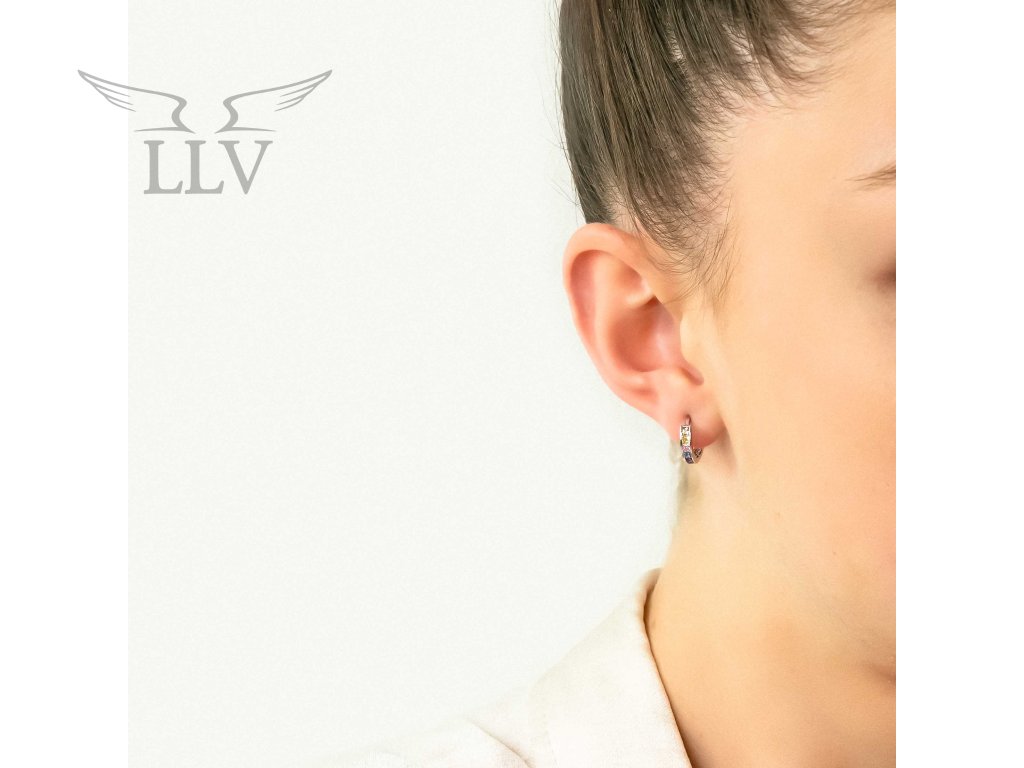 Zdobená kruhová náušnica z bieleho zlata s farebnými zirkónmi 1 cm, jeden kus LLV11-GER035W/01