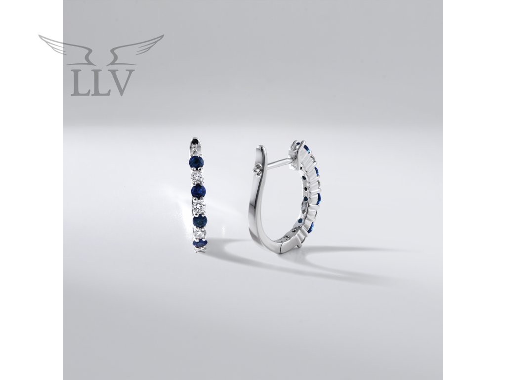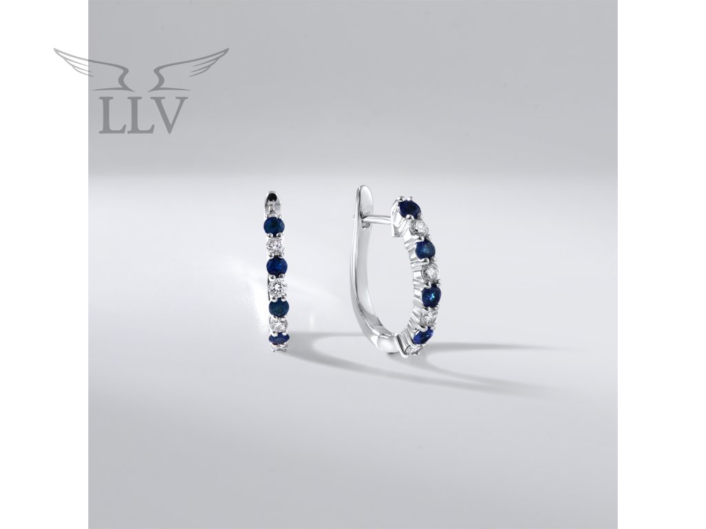 Zdobené náušnice so zafírom a briliantmi, biele zlato LLV59-DER038WSF