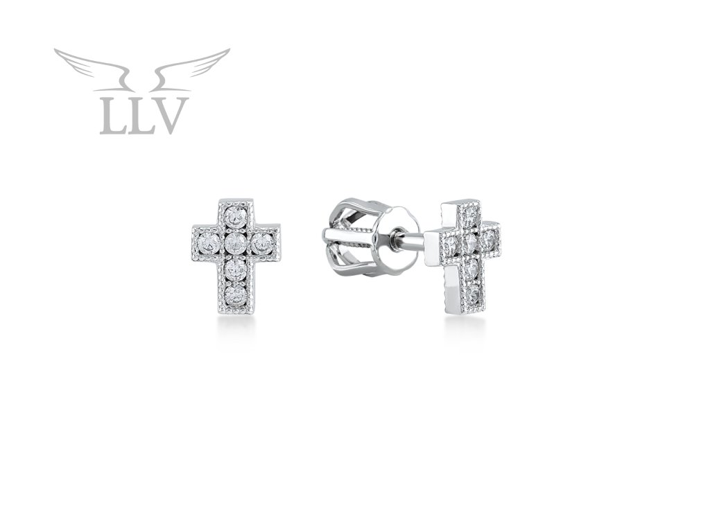Zlatá napichovacia náušnica kríž so zirkónmi, jeden kus LLV11-GER007W/01