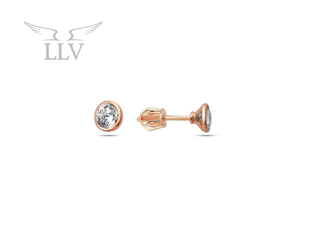 Dominantným prvkom náušnice je okrúhly číry zirkón s priemerom 4 mm, ktorý je zasadený do hladkej lunety – obľúbeného typu uchytenia, ktorý kameň bezpečne obopína a zároveň zvýrazňuje jeho čisté línie a ligot. Kombinácia vysokého lesku zlata a priezračnosti zirkónu pôsobí jemne a vkusne. Zapínanie na skrutku zaistí pohodlné a bezpečné nosenie.