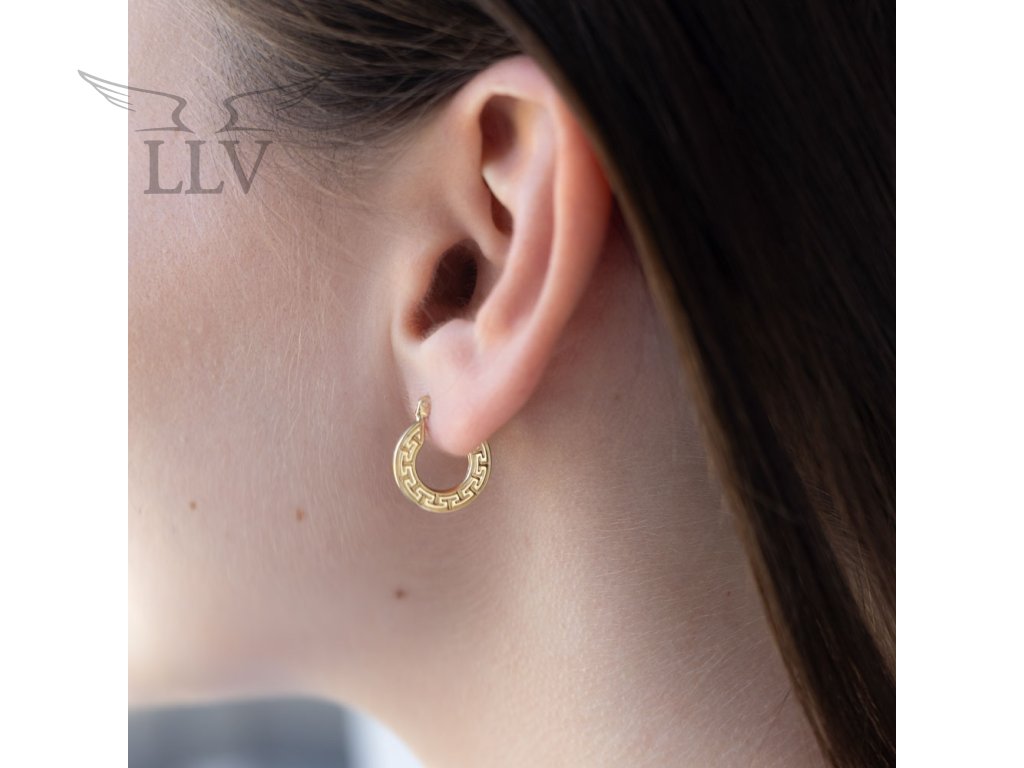 Zlaté krúžkové náušnice s gréckym vzorom LLV31-GER069
