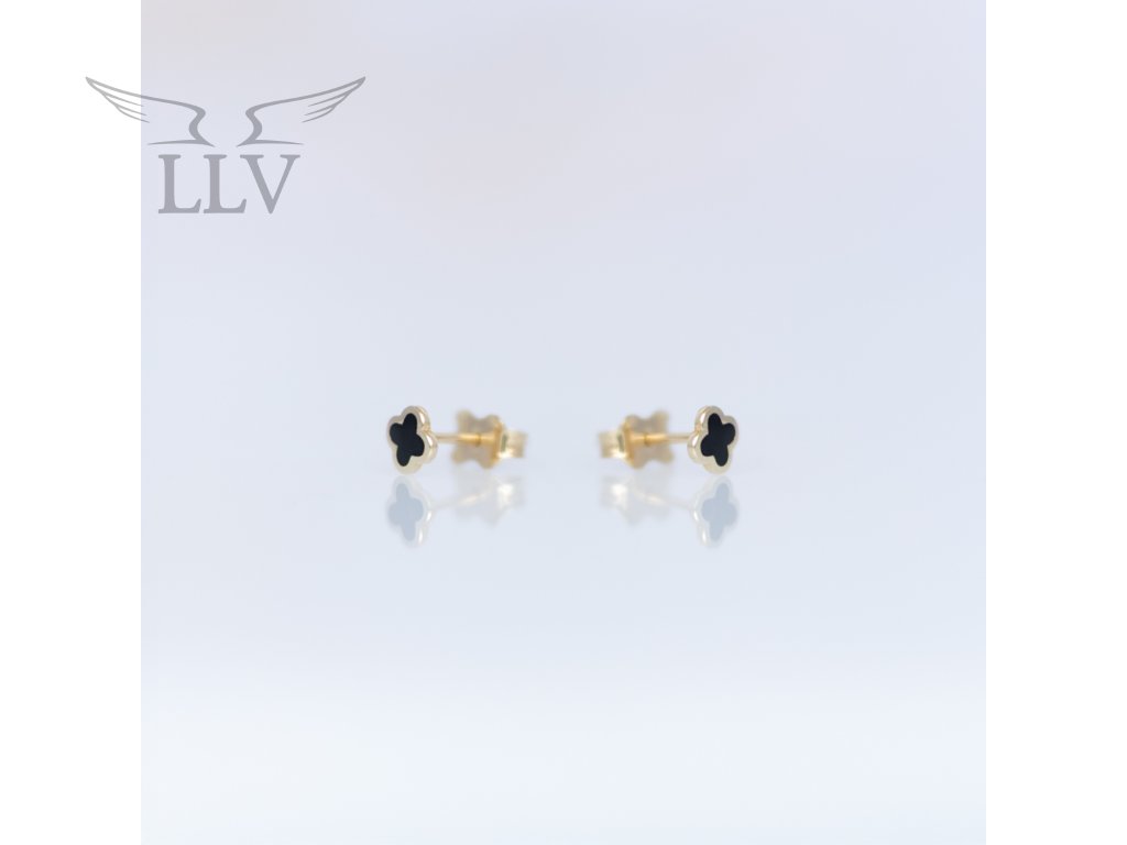 Zlaté napichovacie náušnice s štvorlístkom s čiernym smaltom LLV06-GER433Y
