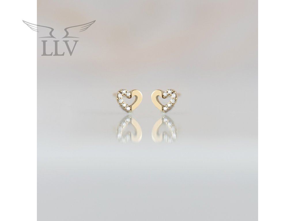 Zlaté napichovacie náušnice srdce so zirkónmi LLV22-GER199ST