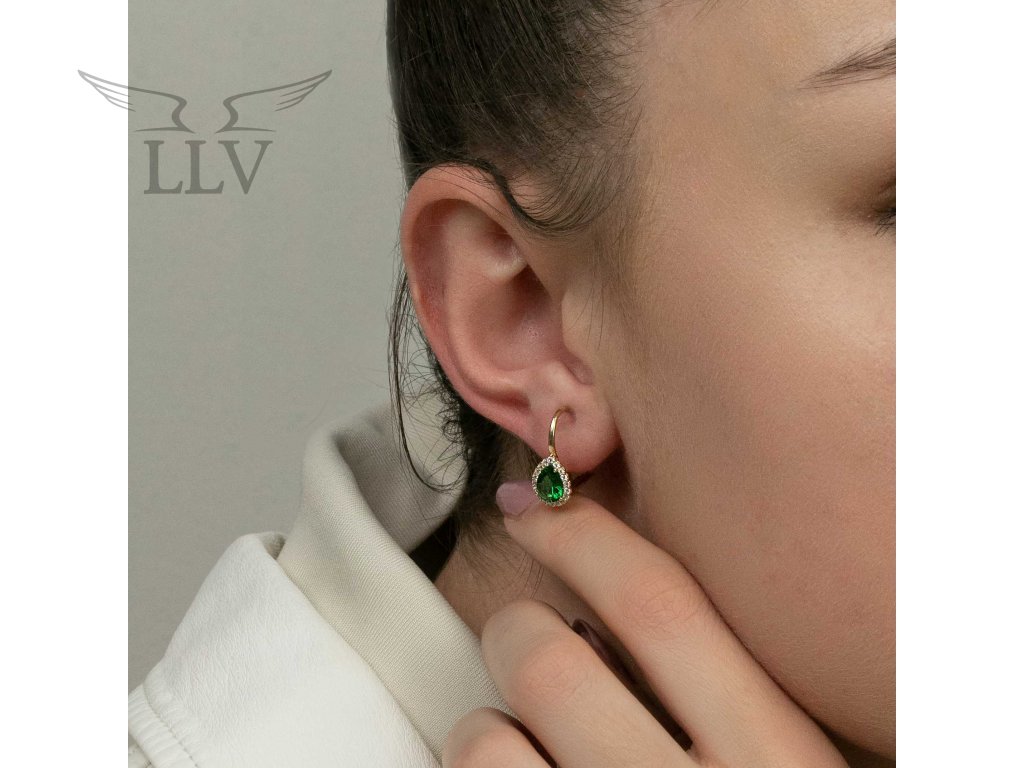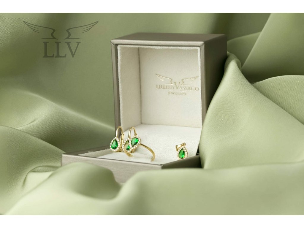 Pôvabné náušnice zo žltého 14kt zlata so syntetickým smaragdom v tvare slzy a zirkónmi. Povrch je hladký vo vysokom lesku s patentovým uzáverom. Kamienky sú uchytené v malých krapniach tzv. "zrnkách". Doplňte o prsteň a prívesok a získate tak nadčasovú súpravu, ktorá nikdy nevyjde z módy. Nádherná tmavozelená farba pristane každej žene a urobí z nej okúzľujúcu princeznú.
