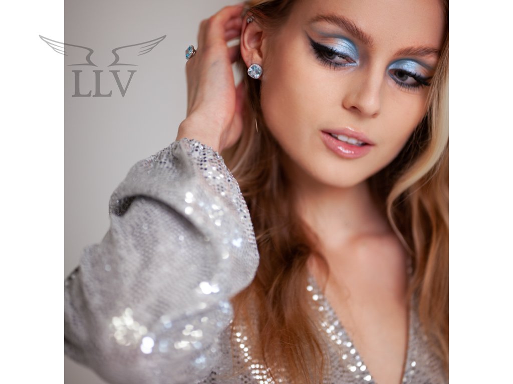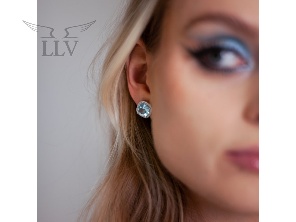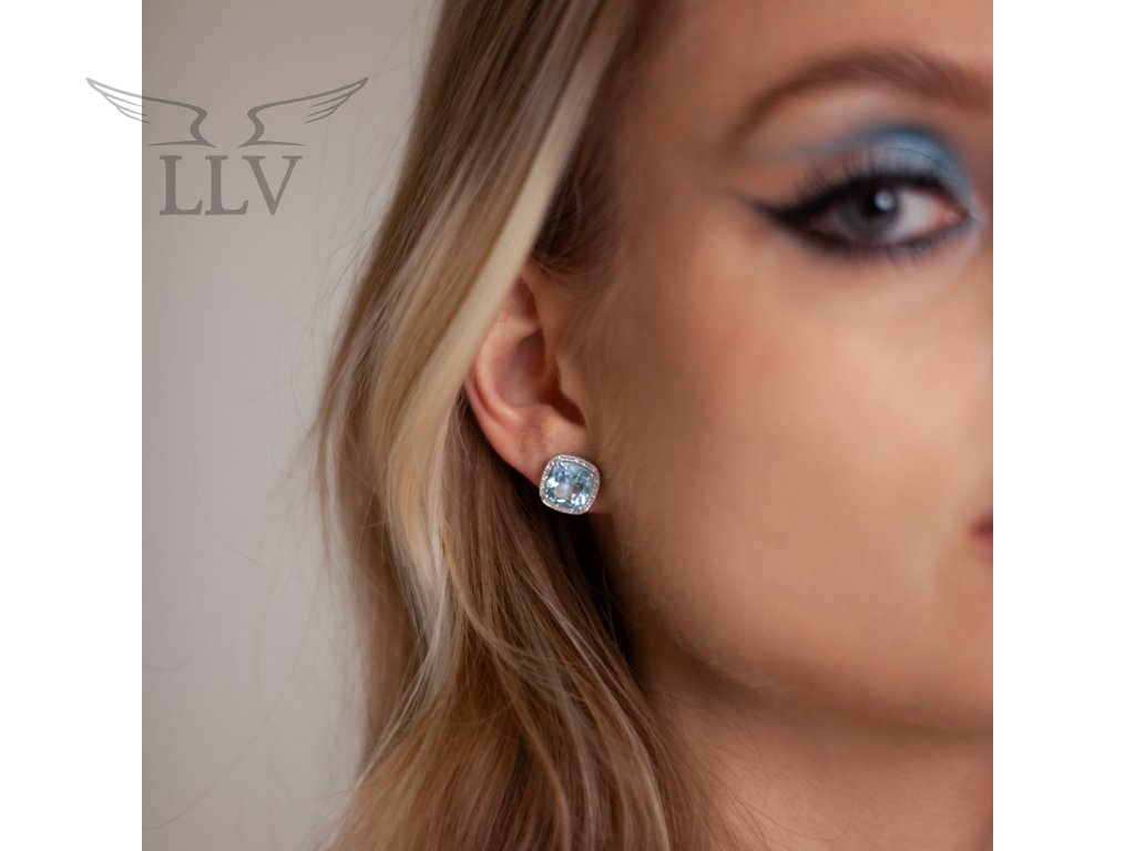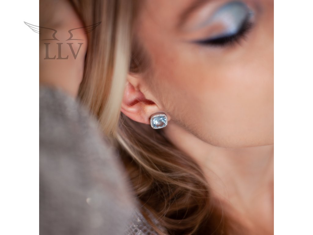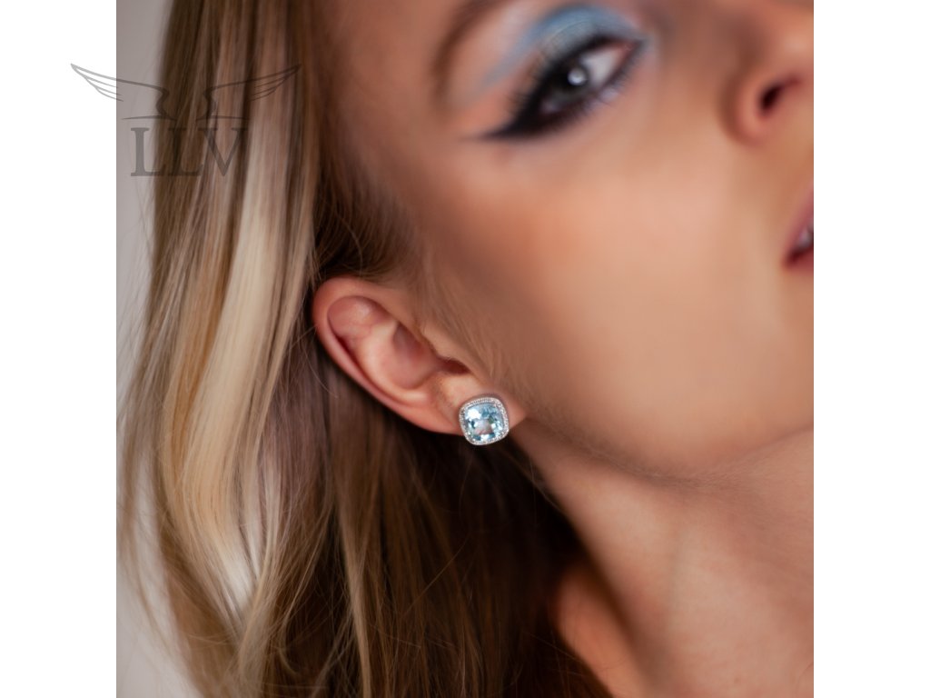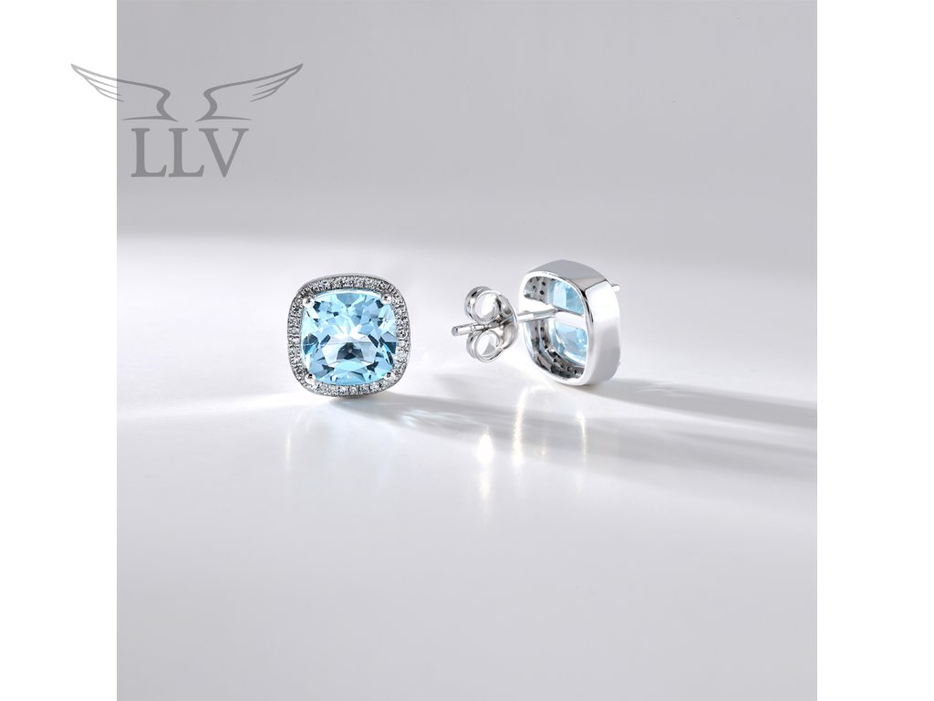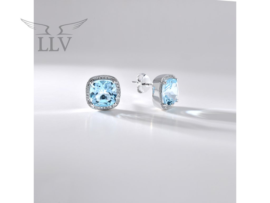 Zlaté náušnice s modrým topásom a briliantmi LLV59-DER002WBT