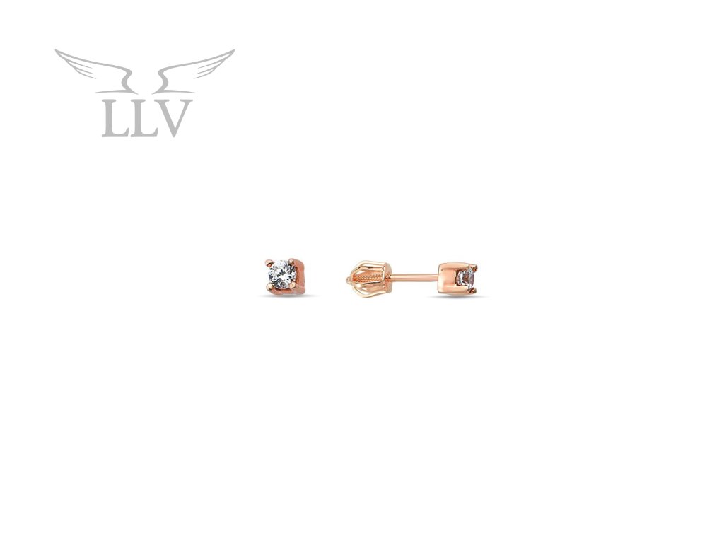 Zlaté náušnice so zirkónom 2 mm, zapínanie na skrutku LLV98-GER160Š