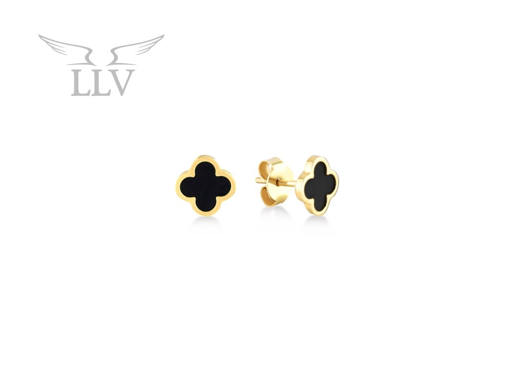 Zlaté náušnice štvorlístok s ónyxom LLV31-GER042