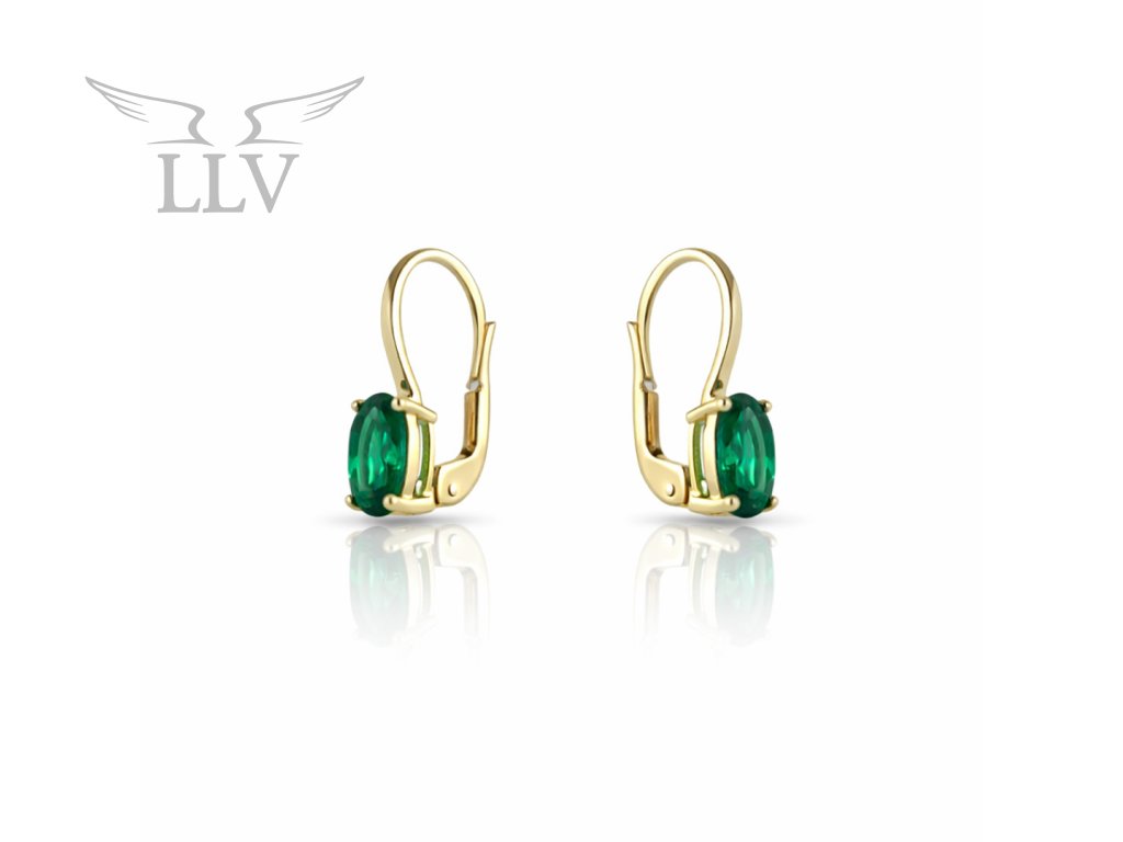 Zlaté patentové náušnice zdobené zeleným zirkónom LLV22-GER306ST