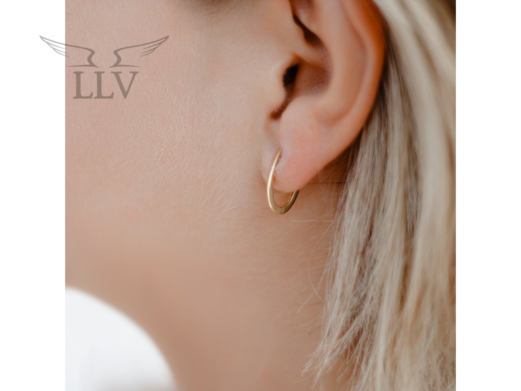 Stredne veľké zlaté náušnice sú vybavené praktickým zapínaním typu cvakačky, ktoré zaisťuje pohodlné a bezpečné nosenie po celý deň. Ideálna voľba pre ženy, ktoré preferujú čistý dizajn s rafinovaným nádychom luxusu.
