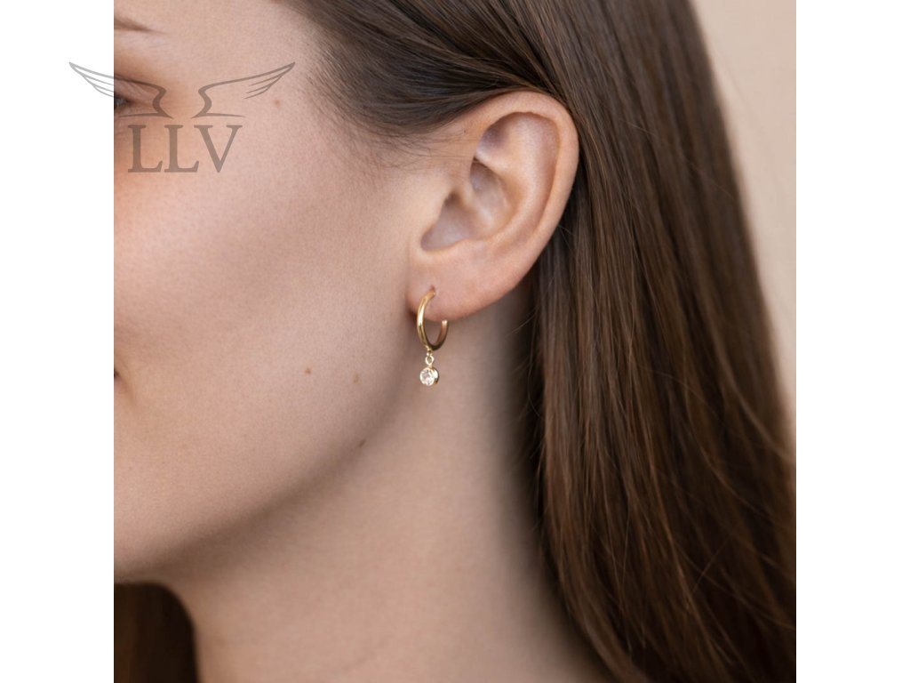 Zlaté náušnice zo 14kt zlata zdobené čírym zirkónom sú nadčasovým kúskom, ktorý rozžiari každý outfit svojou jemnou eleganciou. Krúžkový dizajn doplnený o drobný zavesený kamienok pôsobí ľahko, čisto a dokonale ženským dojmom.