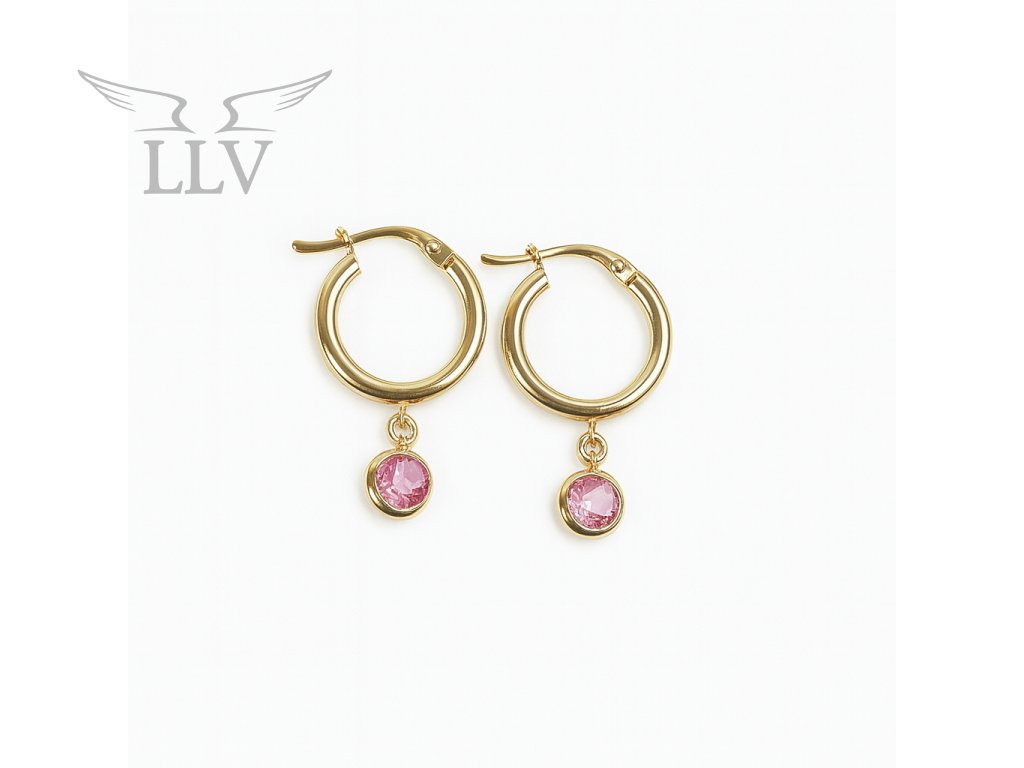 Zlaté visiace náušnice s ružovým zirkónom LLV22-GER200P