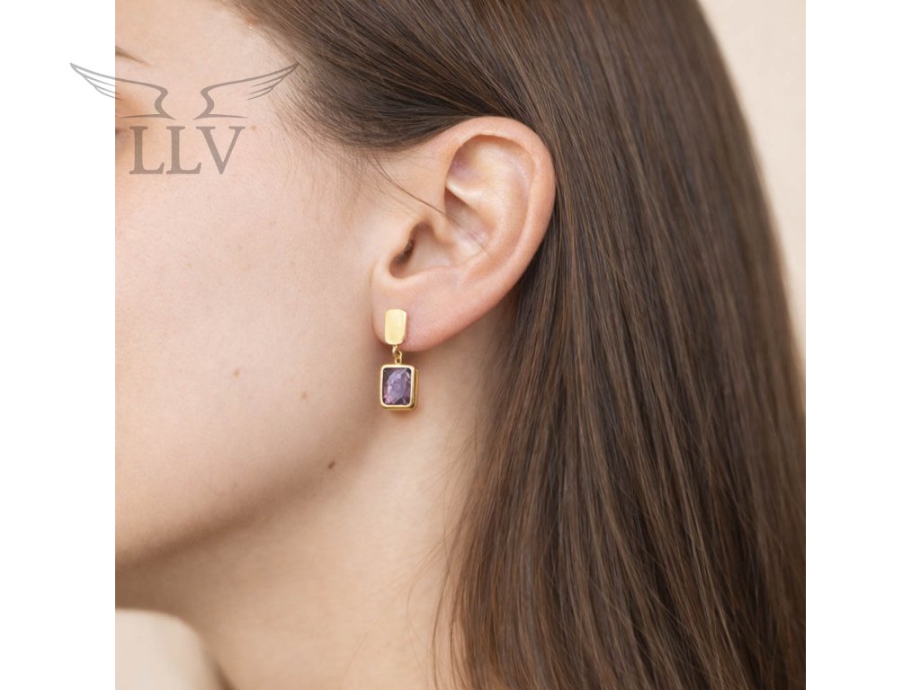 Zlaté visiace náušnice zdobené ametystom LLV06-GER438AM