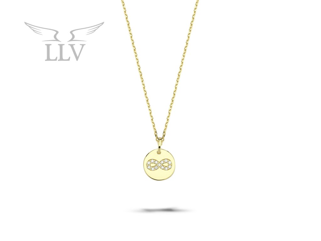 Nadčasový náhrdelník, ktorý je vyrobený zo žltého 14kt zlata. Šperk tvorí jemnú retiazku a pohyblivý prívesok v tvare hladkej, okrúhle doštičky s čírymi zirkónmi, ktoré sú zasadené v tvare nekonečna. Náhrdelník je výrazný vďaka svojmu vysokému lesku a trblietavým zirkónom. Výhodou je tiež možnosť nastaviť retiazku na kratší alebo dlhší variant. Pokiaľ veríte na talizmany a ich silu, tak je tento náhrdelník ideálnym riešením. Urobte radosť svojim blízkym týmto pôvabným náhrdelníkom a dokážte tak Vašu nekonečnú lásku.