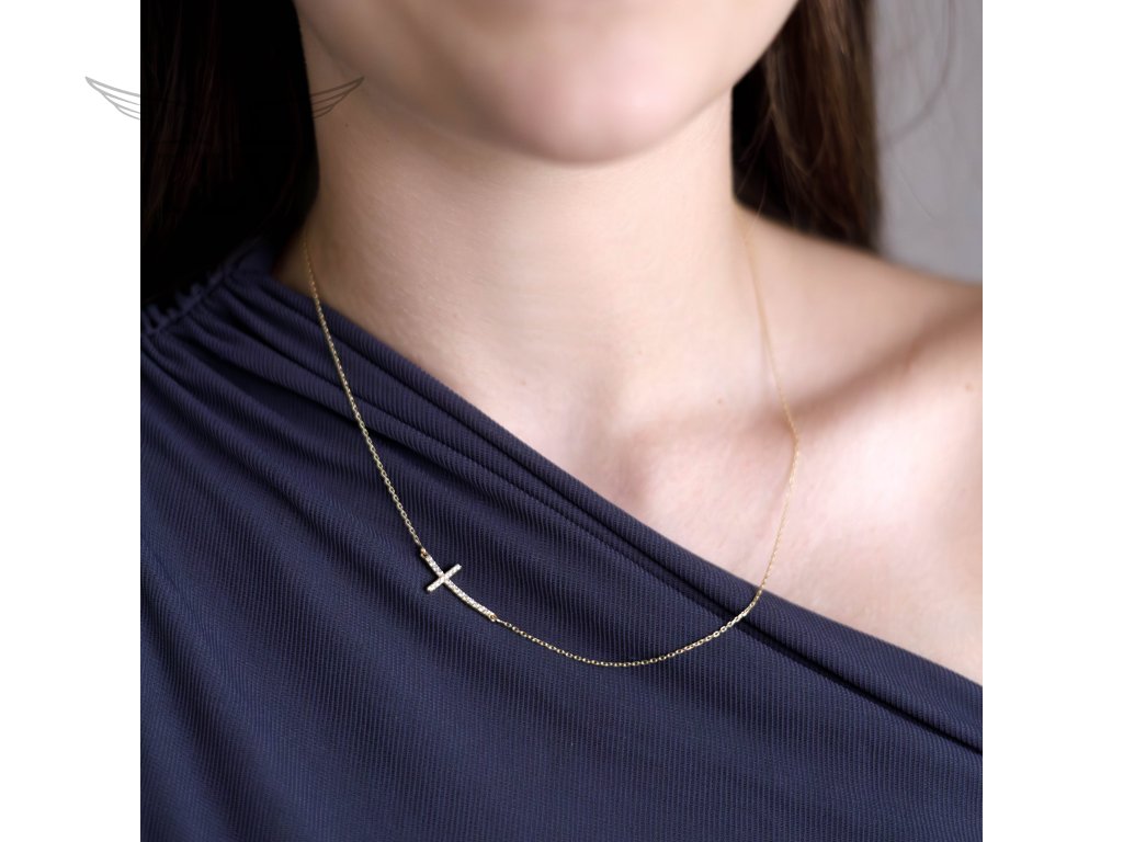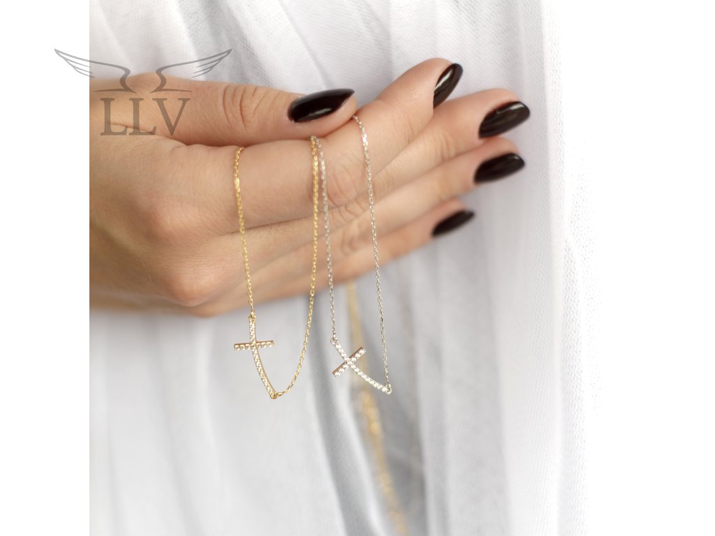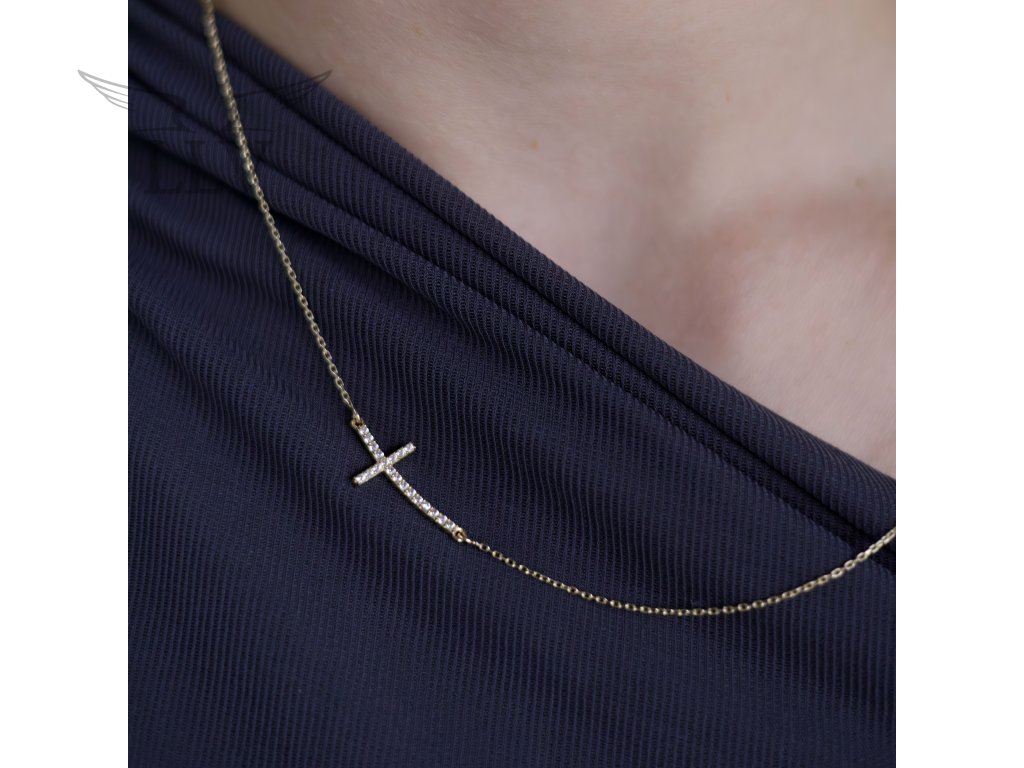 Minimalistický náhrdelník v žltom 14kt zlate s krížikom "na ležato" zdobený žiarivými zirkónmi. Náhrdelník je hladký vo vysokom lesku a má moderný vzhľad. Tento jemný šperk sa bude hodiť ku každému štýlu a vy budete vždy "in" ! Stále obľúbenejší šperk, tzv. "celebrita" . Ideálny darček, keďže retiazku je možné nastaviť na kratší alebo dlhší variant.