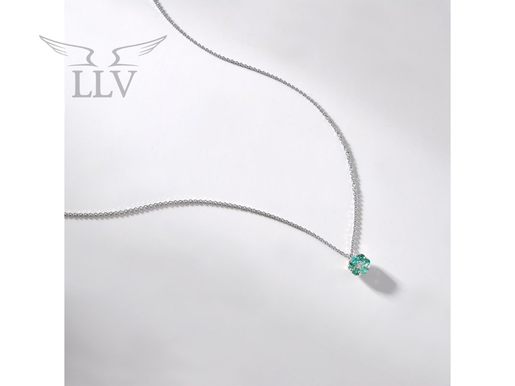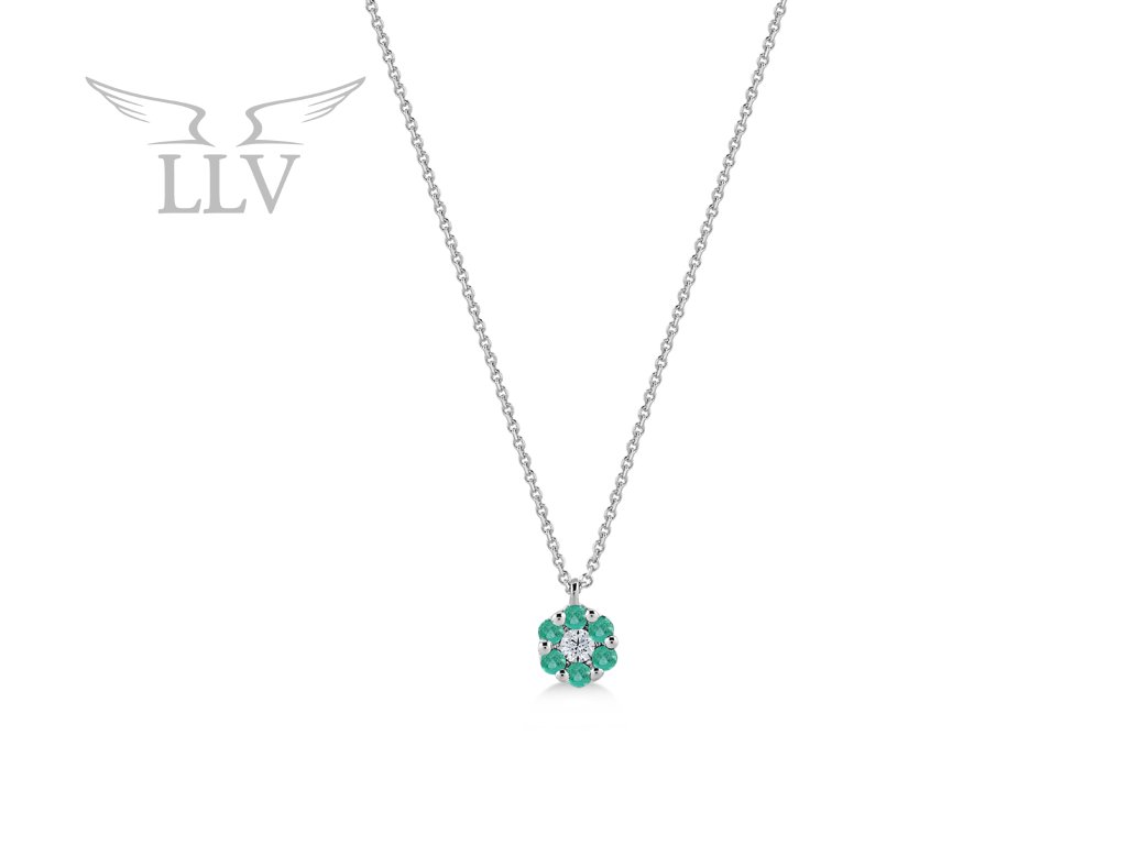 Zlatý náhrdelník so smaragdom a diamantmi LLV59-DN008WEM