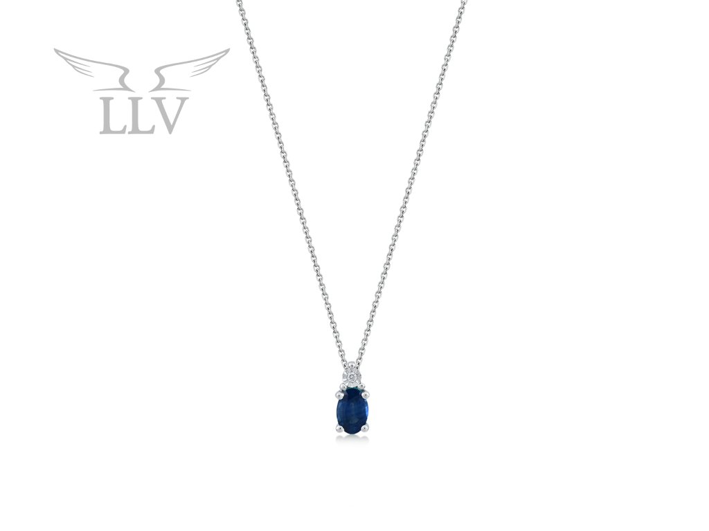 Zlatý náhrdelník so zafírom a diamantmi LLV59-DN006WS