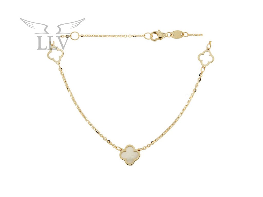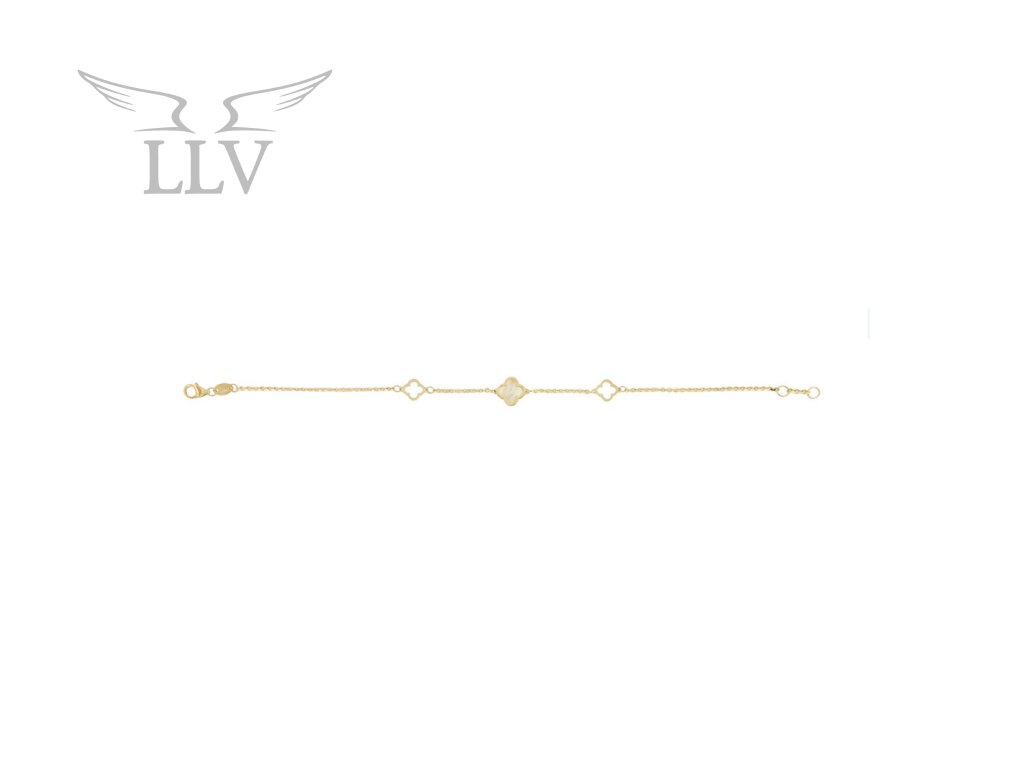 Zlatý náramok s perleťou, štvorlístky LLV31-GB040S