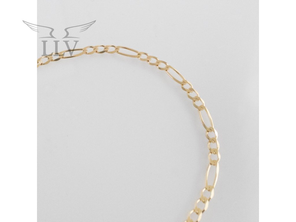 Zlatý náramok typu Figaro zo 14kt zlata je štýlový a univerzálny šperk, ktorý vyniká svojou charakteristickou štruktúrou - pravidelným striedaním dlhších a kratších očiek. Tento klasický dizajn pôsobí elegantne, moderne a súčasne odráža tradíciu precízneho zlatníckeho remesla.