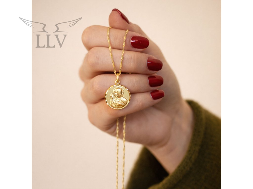 Tento prekrásny symbolický prívesok zo žltého 14kt zlata Vás určite očarí na prvý pohľad. Obojstranný prívesok je okrúhleho tvaru a je z jednej strany zdobený plastickým vyobrazením Ježiša a z druhej strany madonkou s dieťaťom. Rámček prívesku je zdobený originálnym gravírom, vďaka ktorému je tento prívesok úplne unikátny.Povrch prívesku je v matnej povrchovej úprave. Tento výnimočný zlatý šperk sa môže stať krásnym narodeninovým či pamätným darčekom.