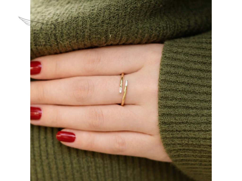 Zirkóny v podlhovastom výbruse vytvárajú výrazný svetelný efekt a dodávajú šperku luxusný, iskrivý charakter. Celkový design je čistý, minimalistický a zároveň veľmi ženský. Tento prsteň je skvelou voľbou pre ženy, ktoré milujú moderné šperky a perfektne doplnia ako každodenný outfit, tak slávnostný vzhľad.