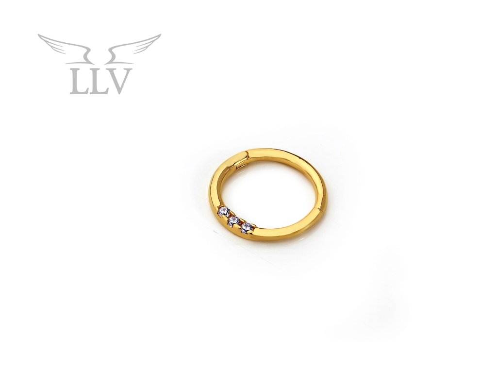 Zlatý piercing kroužek zdobený zirkony LLV92-GPI005SP