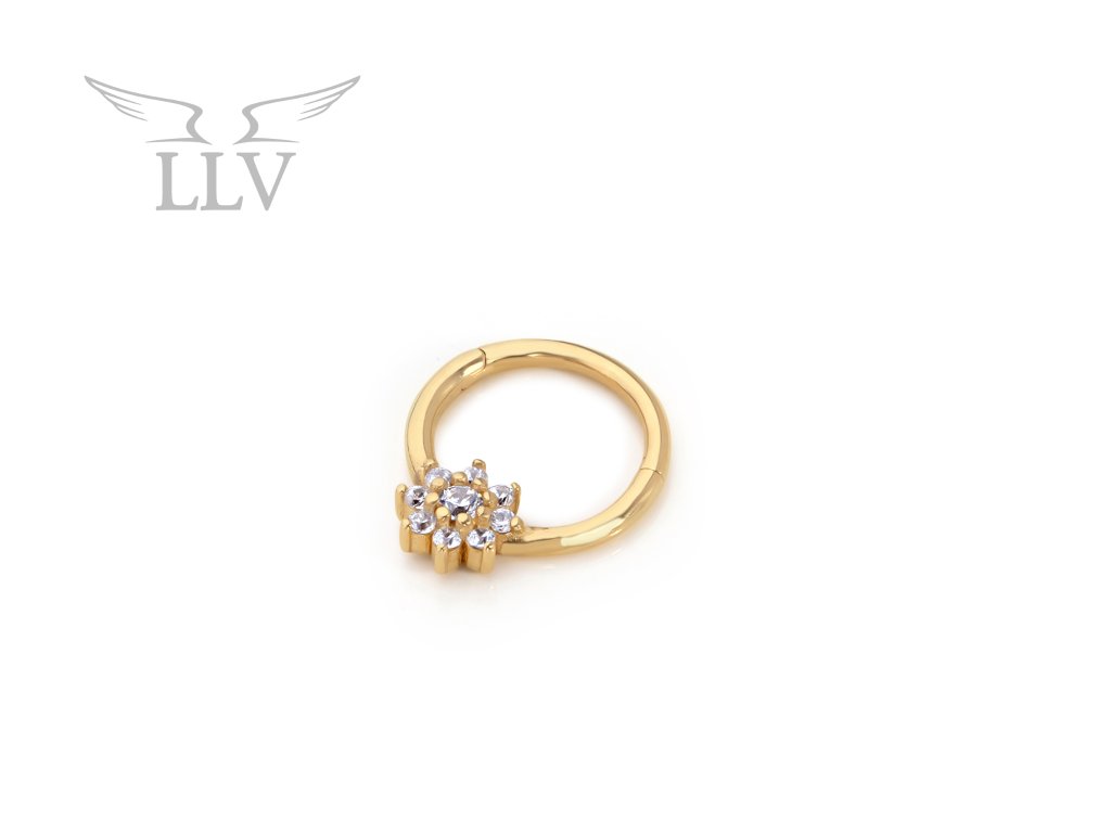 Zlatý piercing krúžok kvetinka s čírymi zirkónmi LLV92-GPI034SP