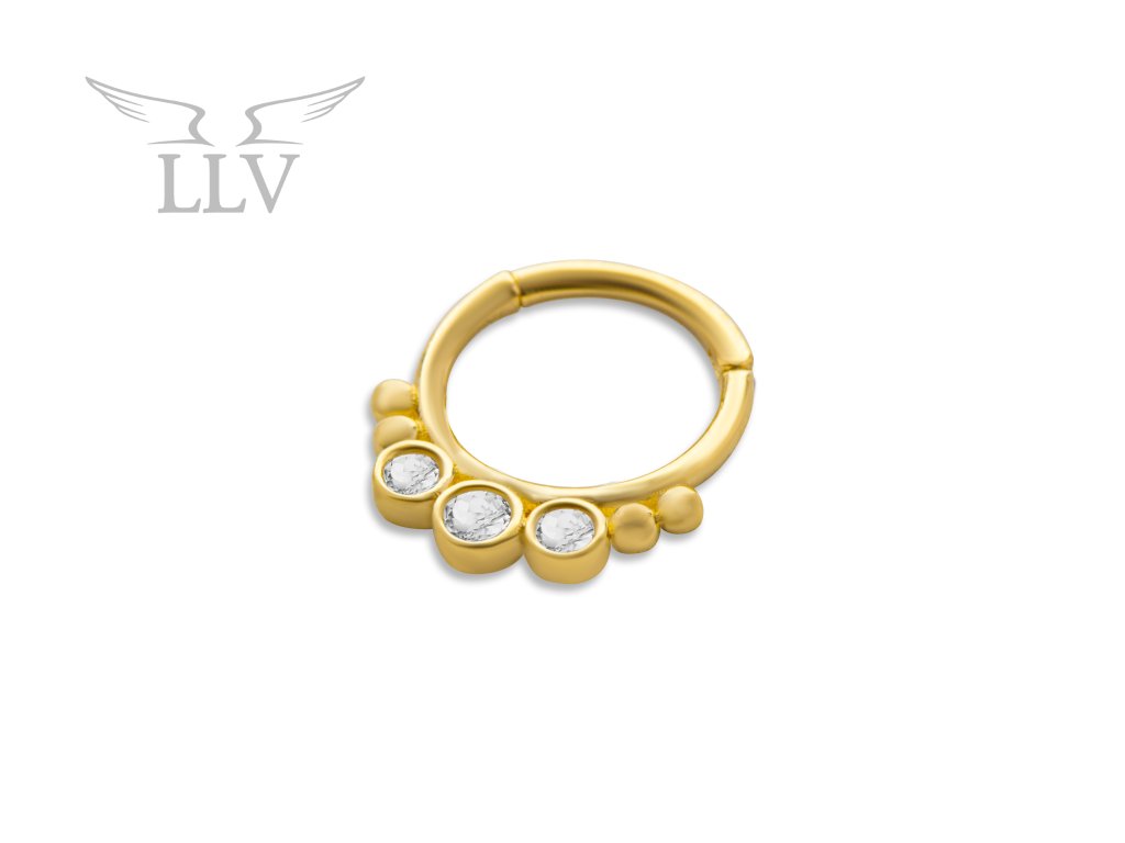 Zlatý piercing krúžok s guľôčkami a zirkónmi LLV92-GPI029SP