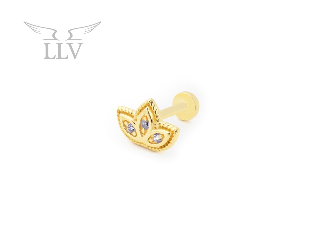Zlatý piercing labreta lotosový kvet so zirkónmi LLV92-GPI058LB