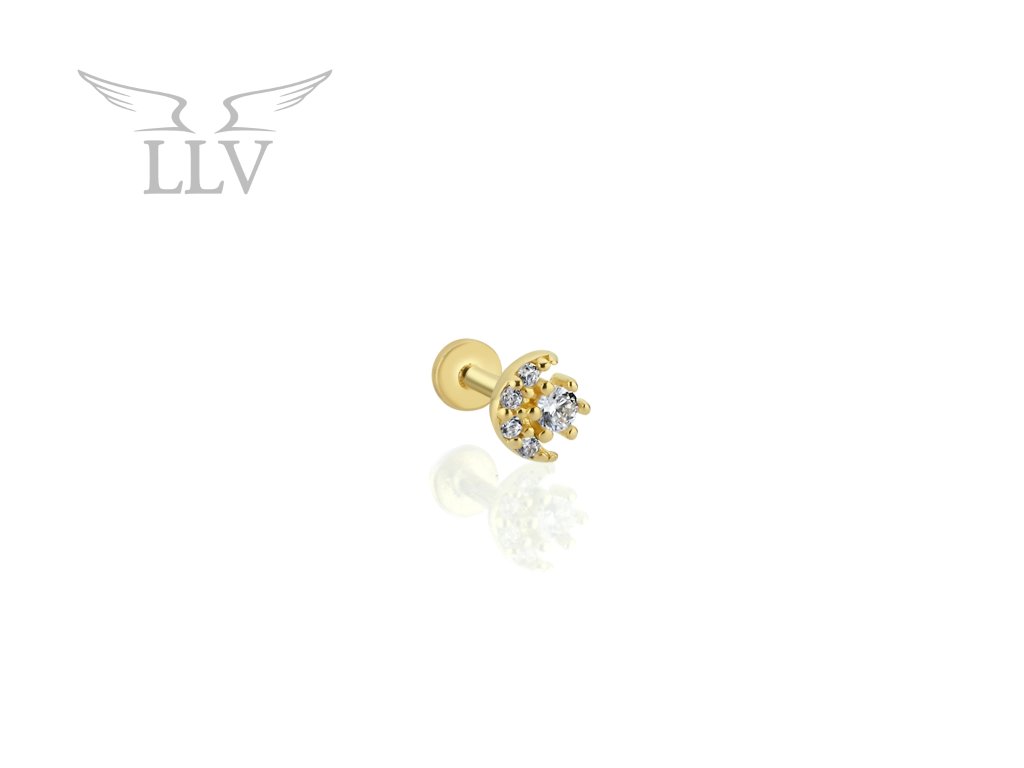 Zlatý piercing labreta mesiac a slnko so zirkónmi LLV92-GPI076LB