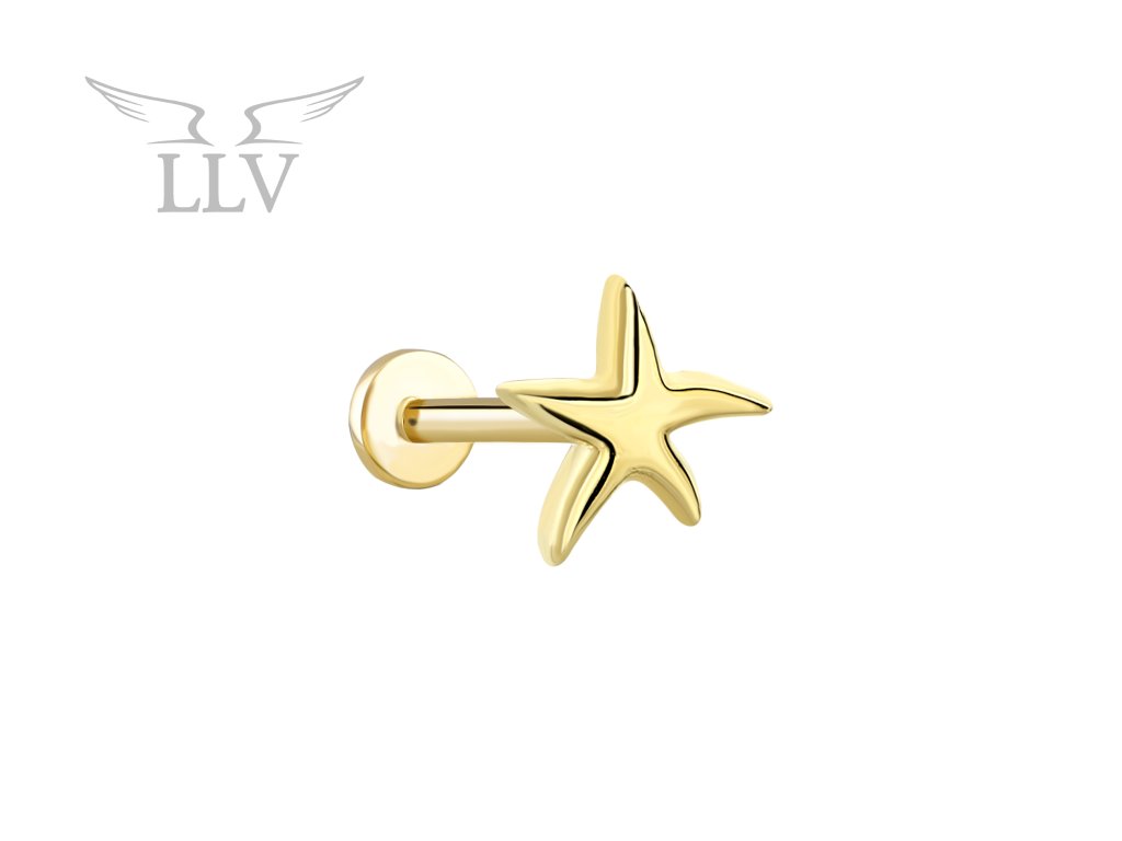 Zlatý piercing labreta morská hviezdica LLV92-GPI129LB
