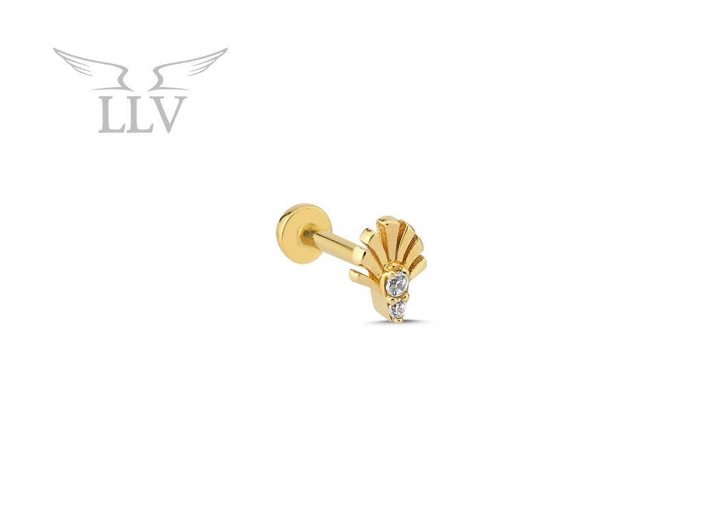 Zlatý piercing labreta palmový list zdobený zirkónmi LLV92-GPI057LB