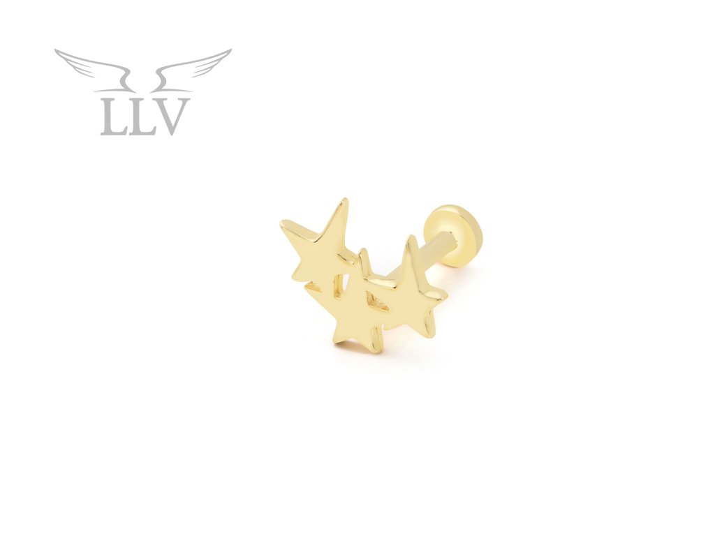 Zlatý piercing labreta s hviezdami LLV92-GPI051LB