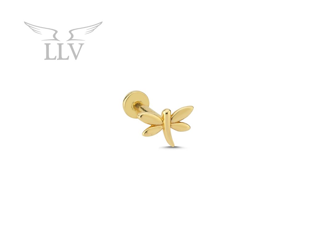 Zlatý piercing labreta s motívom vážky LLV92-GPI049LB