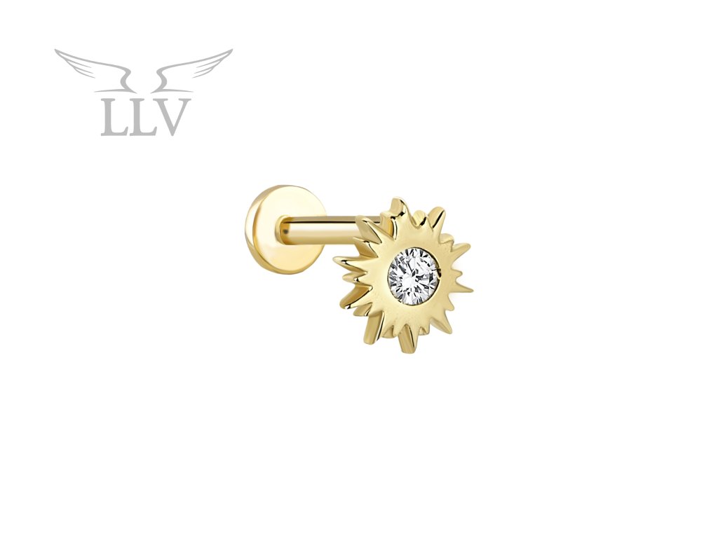 Zlatý piercing labreta slnko so zirkónom LLV92-GPI033LB