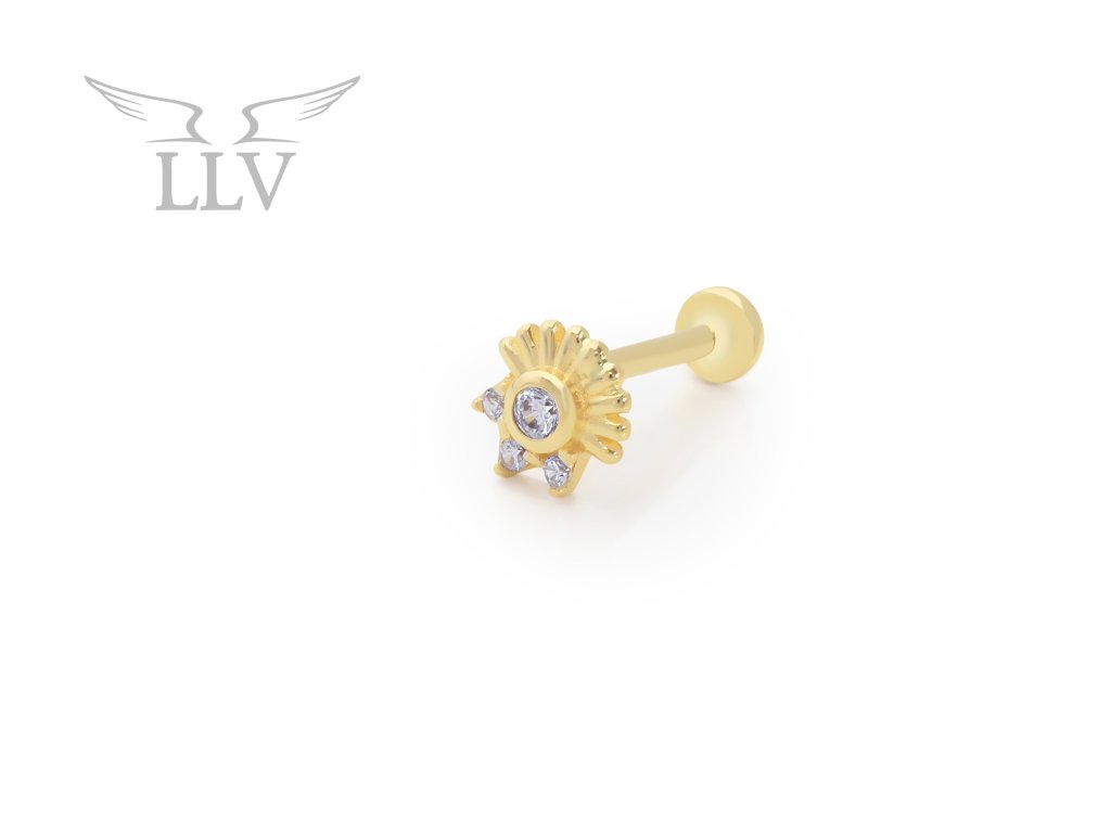 Zlatý piercing labreta slnko zdobené zirkónmi LLV92-GPI075LB