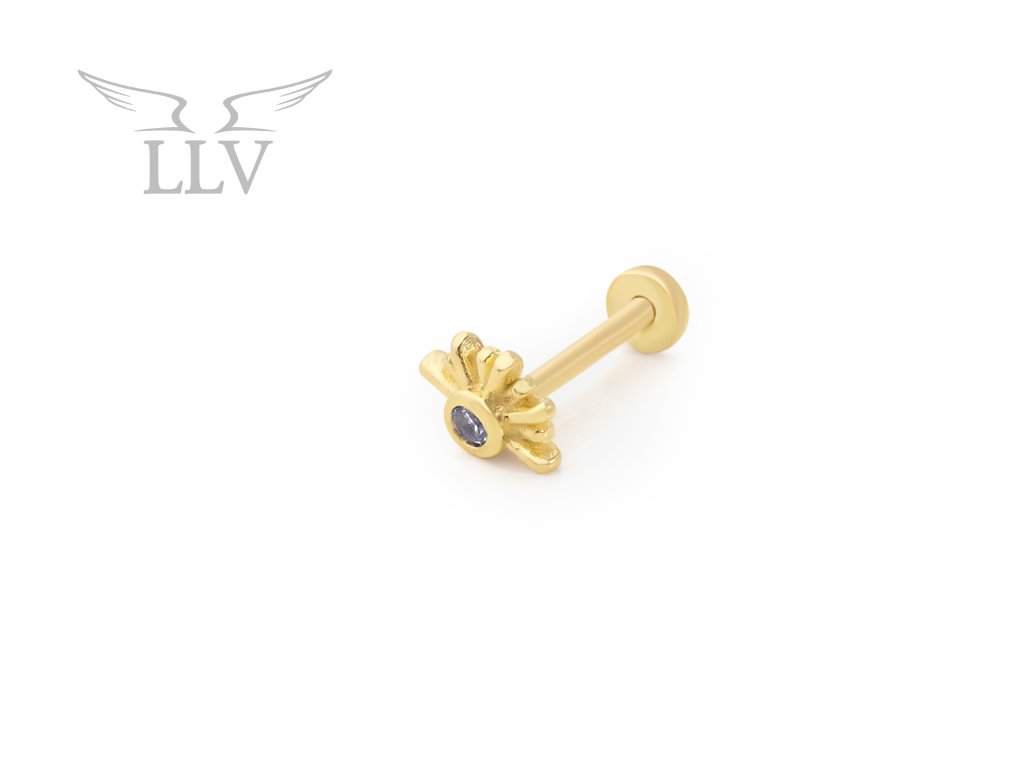 Zlatý piercing labreta slnko zdobené zirkónom LLV92-GPI078LB