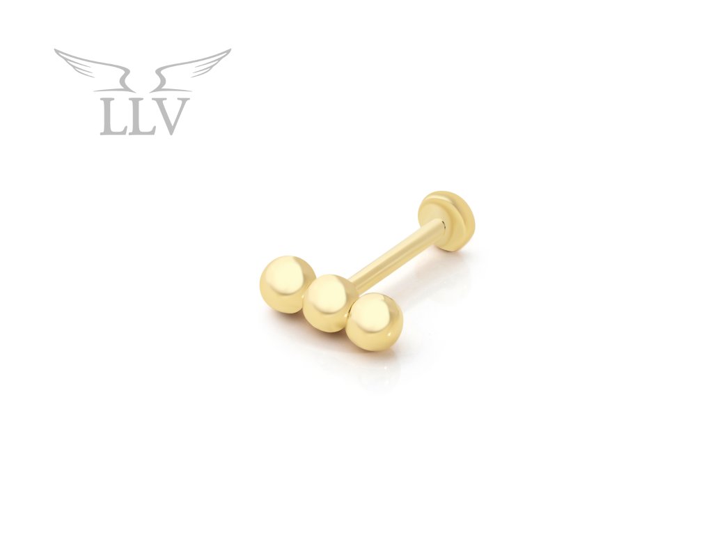 Zlatý piercing labreta zdobená guľôčkami LLV92-GPI043LB