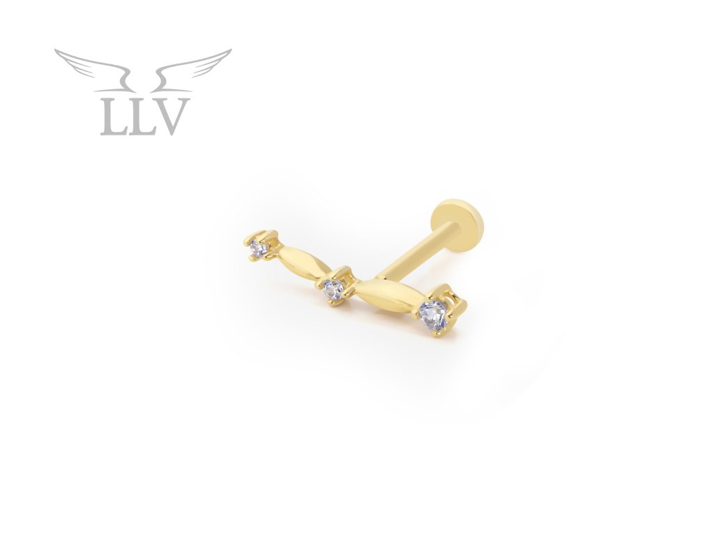 Zlatý piercing labreta zdobená zirkónmi LLV92-GPI086LB
