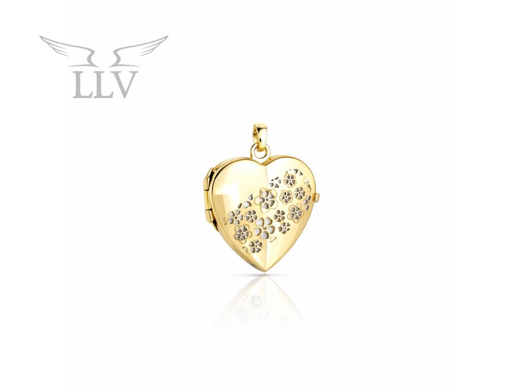 Zlatý prívesok medailónok srdca s kvetmi LLV22-GP093